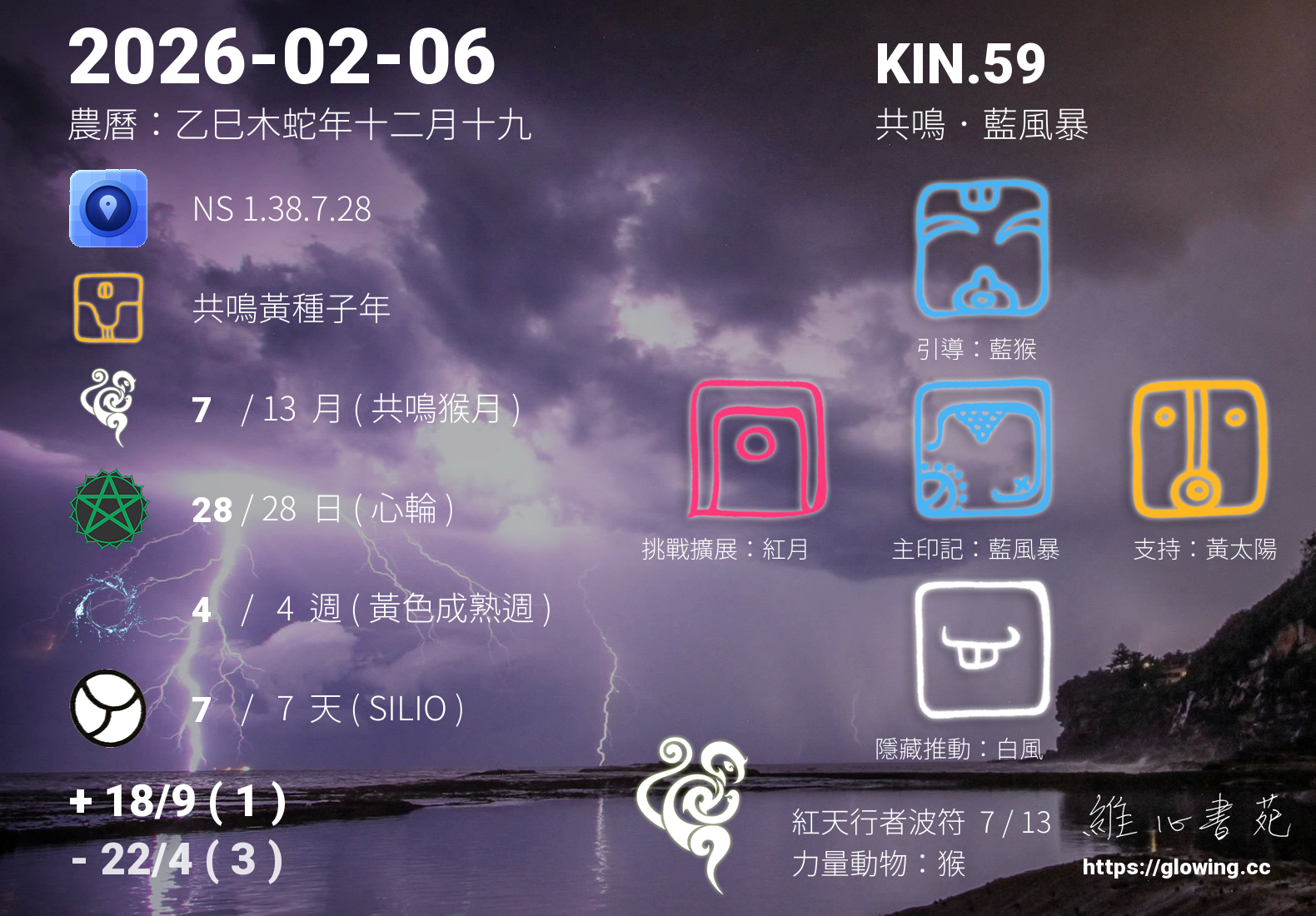 我們可以稱 KIN 59 為 【共鳴藍風暴】 、 【共鳴的藍風暴】 、 【紅天行者波符 之 共鳴藍風暴】 也可以是 【共鳴藍風暴.紅天行者波符】 ,你比較喜歡哪一個稱號呢?