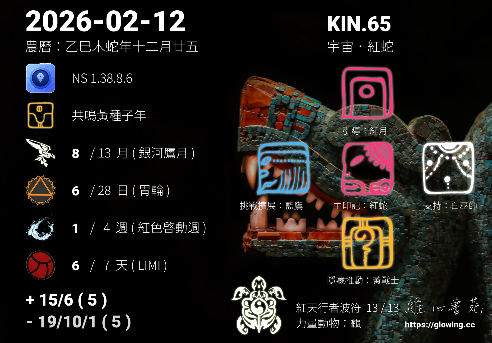 KIN.64 位於 紅天行者波符 13 天中的第 12 天,銀河音階為調性 12