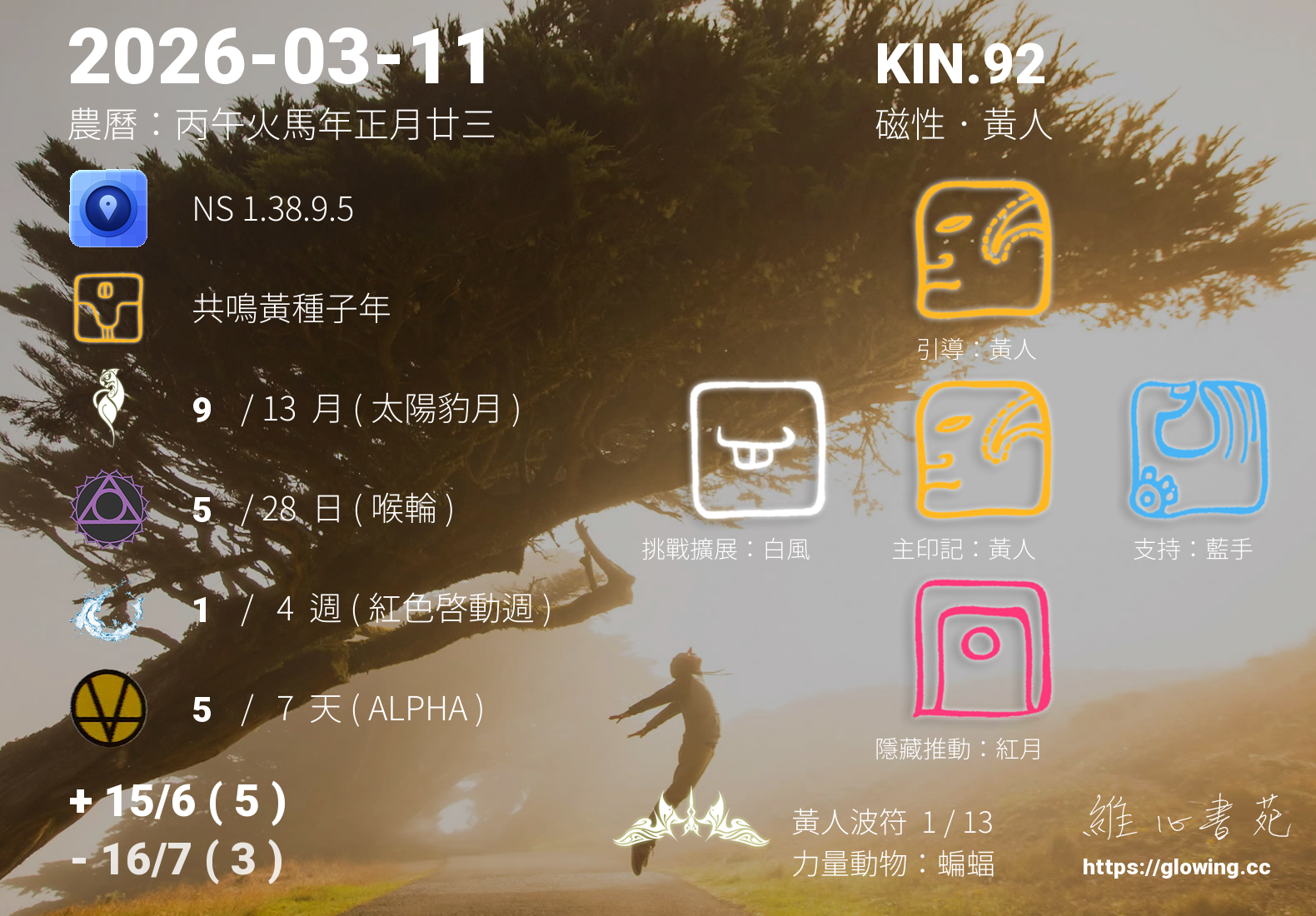 黃人的引導依據KIN的調性不同會有五種可能性,KIN.92的引導圖騰是黃人 , 黃人引導著我們崇尚智慧,探求內心的平靜能量,在一次次更深入看見自己內在的過程,我們能夠更清楚,所有的連結無須外求,我與內在的連結越緊密,生命將越加的繽紛。