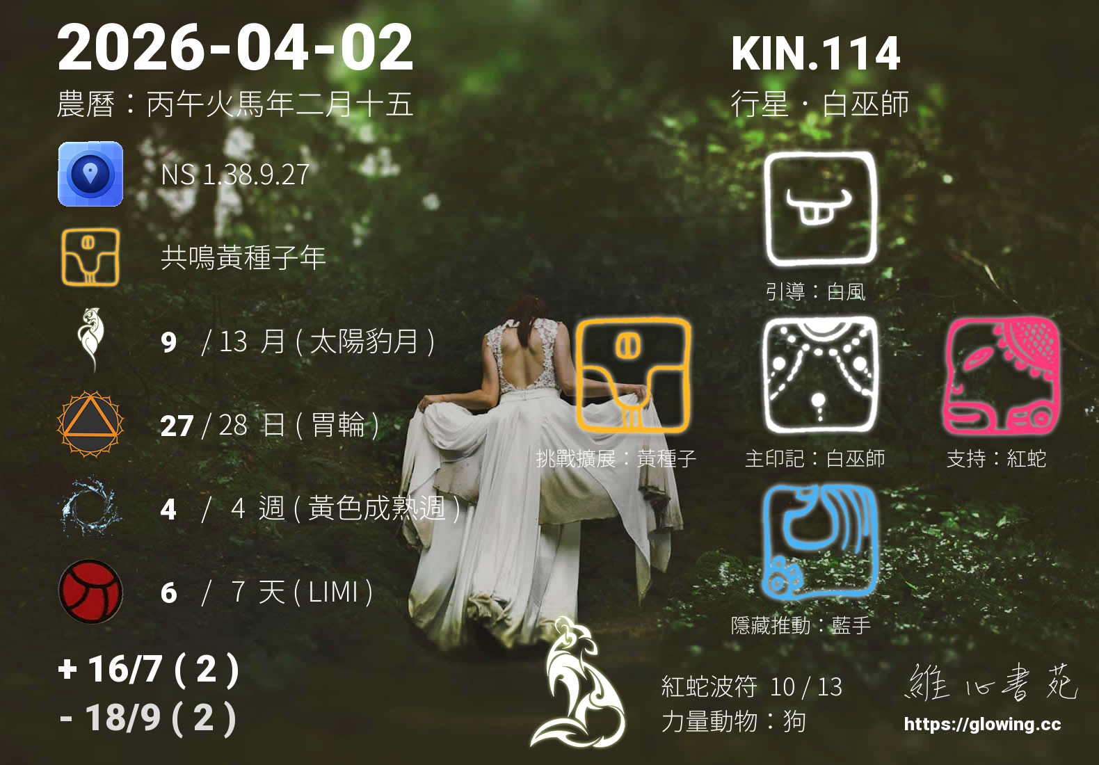 我們可以稱 KIN 114 為 【行星白巫師】 、 【行星的白巫師】 、 【紅蛇波符 之 行星白巫師】 也可以是 【行星白巫師.紅蛇波符】 ,你比較喜歡哪一個稱號呢?