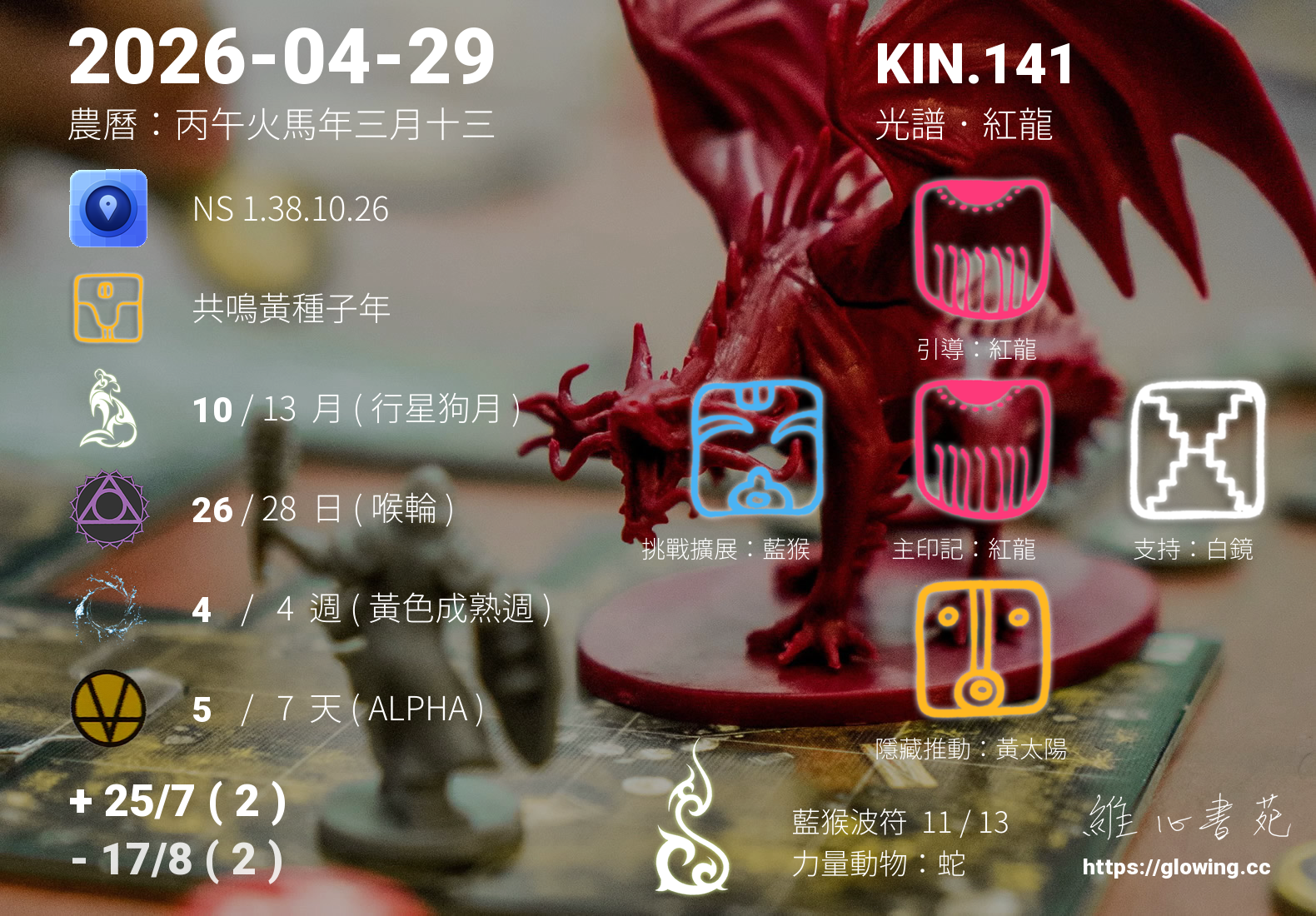 黃太陽與紅龍相互為對方的隱藏推動圖騰, 太陽高掛天上照耀四方,本不須能量推動,然而紅龍創造新生的本質,能夠讓黃太陽對於自身的付出增添動力。