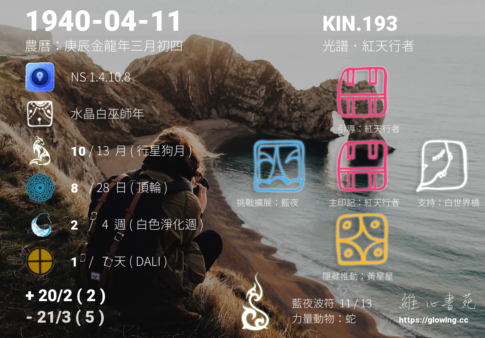 我們可以稱 KIN 193 為 【光譜紅天行者】 、 【光譜的紅天行者】 、 【藍夜波符 之 光譜紅天行者】 也可以是 【光譜紅天行者.藍夜波符】 ,你比較喜歡哪一個稱號呢?