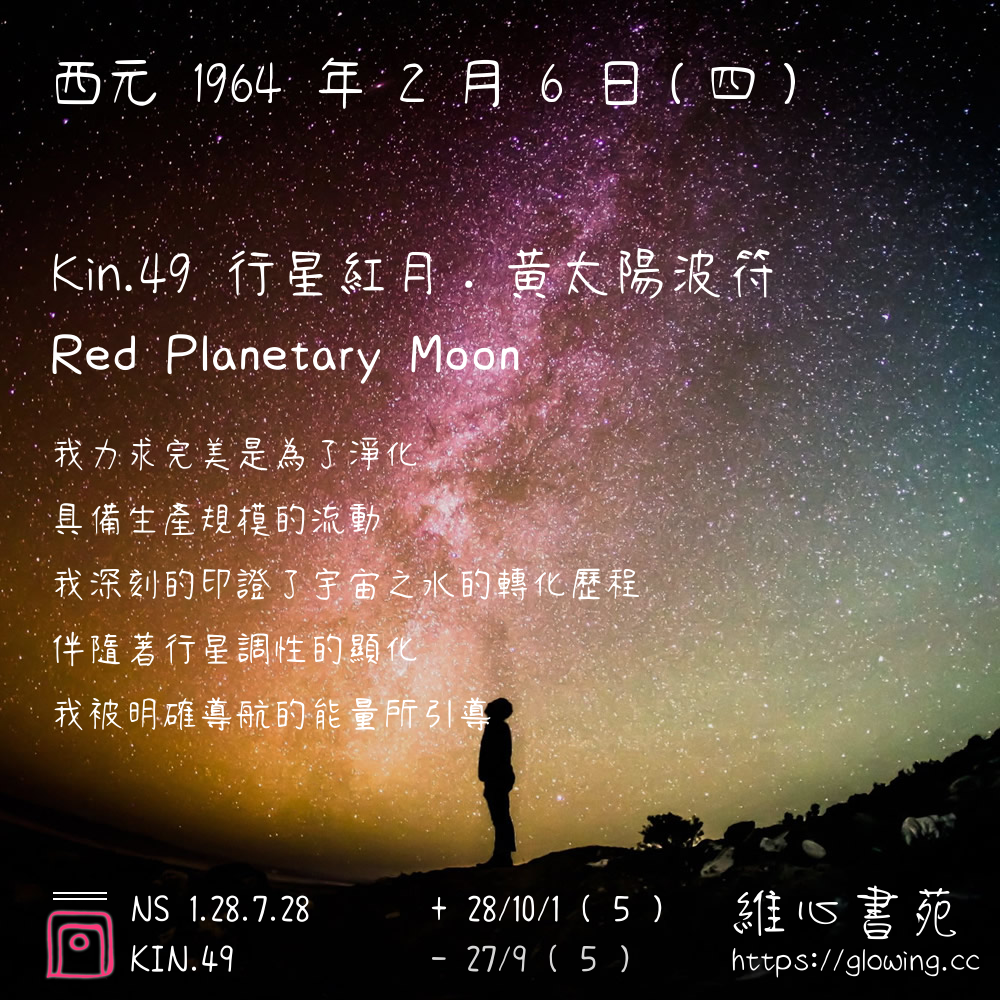 我們可以稱 KIN 49 為 【行星紅月】 、 【行星的紅月】 、 【黃太陽波符 之 行星紅月】 也可以是 【行星紅月.黃太陽波符】 ,你比較喜歡哪一個稱號呢?