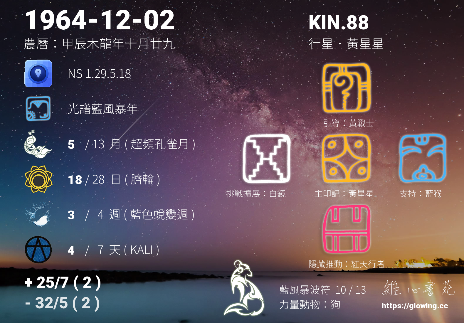 我們可以稱 KIN 88 為 【行星黃星星】 、 【行星的黃星星】 、 【藍風暴波符 之 行星黃星星】 也可以是 【行星黃星星.藍風暴波符】 ,你比較喜歡哪一個稱號呢?