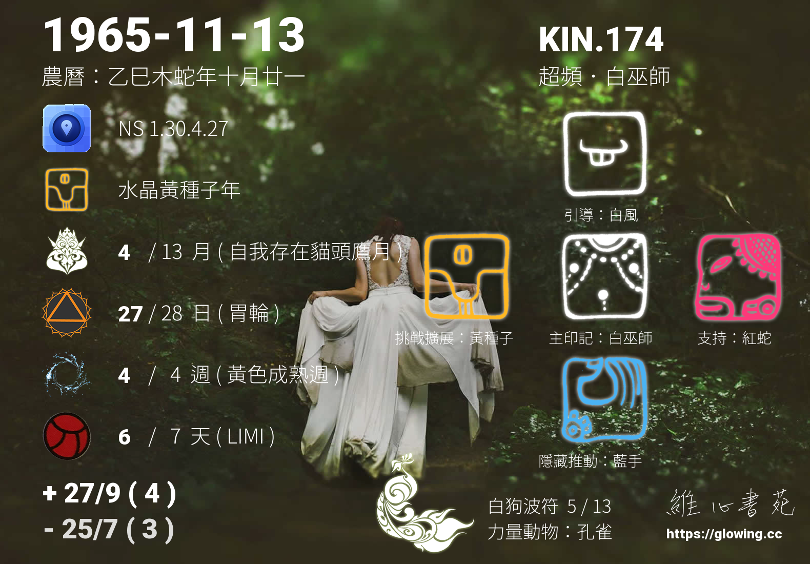 我們可以稱 KIN 174 為 【超頻白巫師】 、 【超頻的白巫師】 、 【白狗波符 之 超頻白巫師】 也可以是 【超頻白巫師.白狗波符】 ,你比較喜歡哪一個稱號呢?