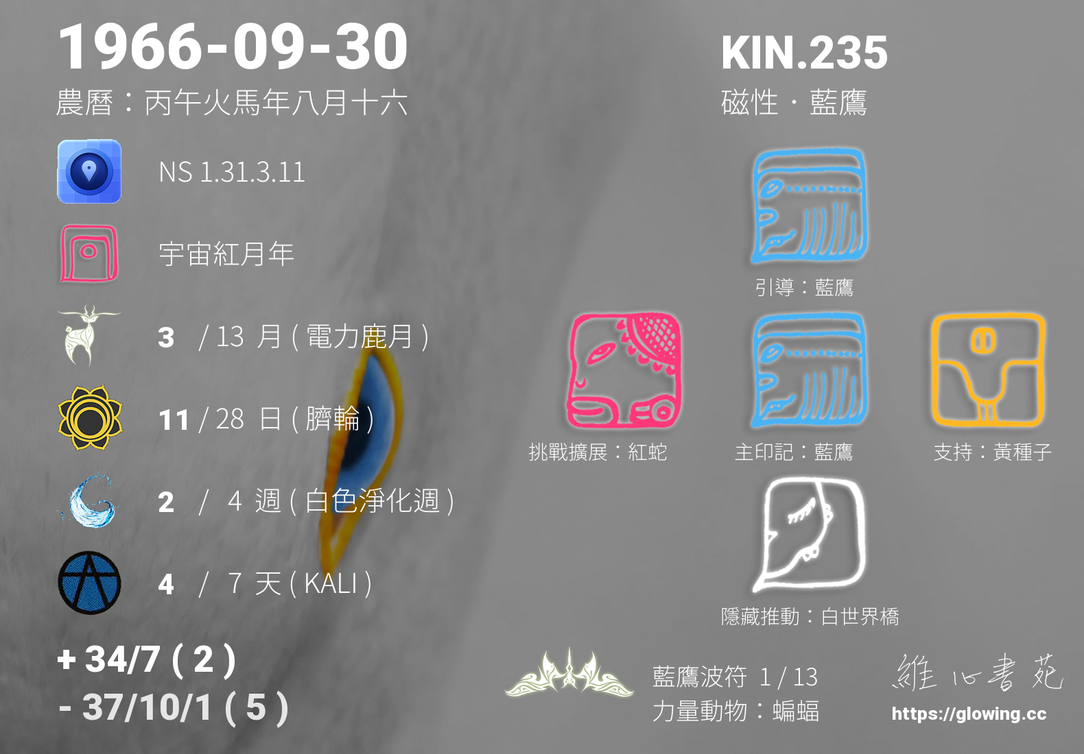 我們可以稱 KIN 235 為 【磁性藍鷹】 、 【磁性的藍鷹】 、 【藍鷹波符 之 磁性藍鷹】 也可以是 【磁性藍鷹.藍鷹波符】 ,你比較喜歡哪一個稱號呢?