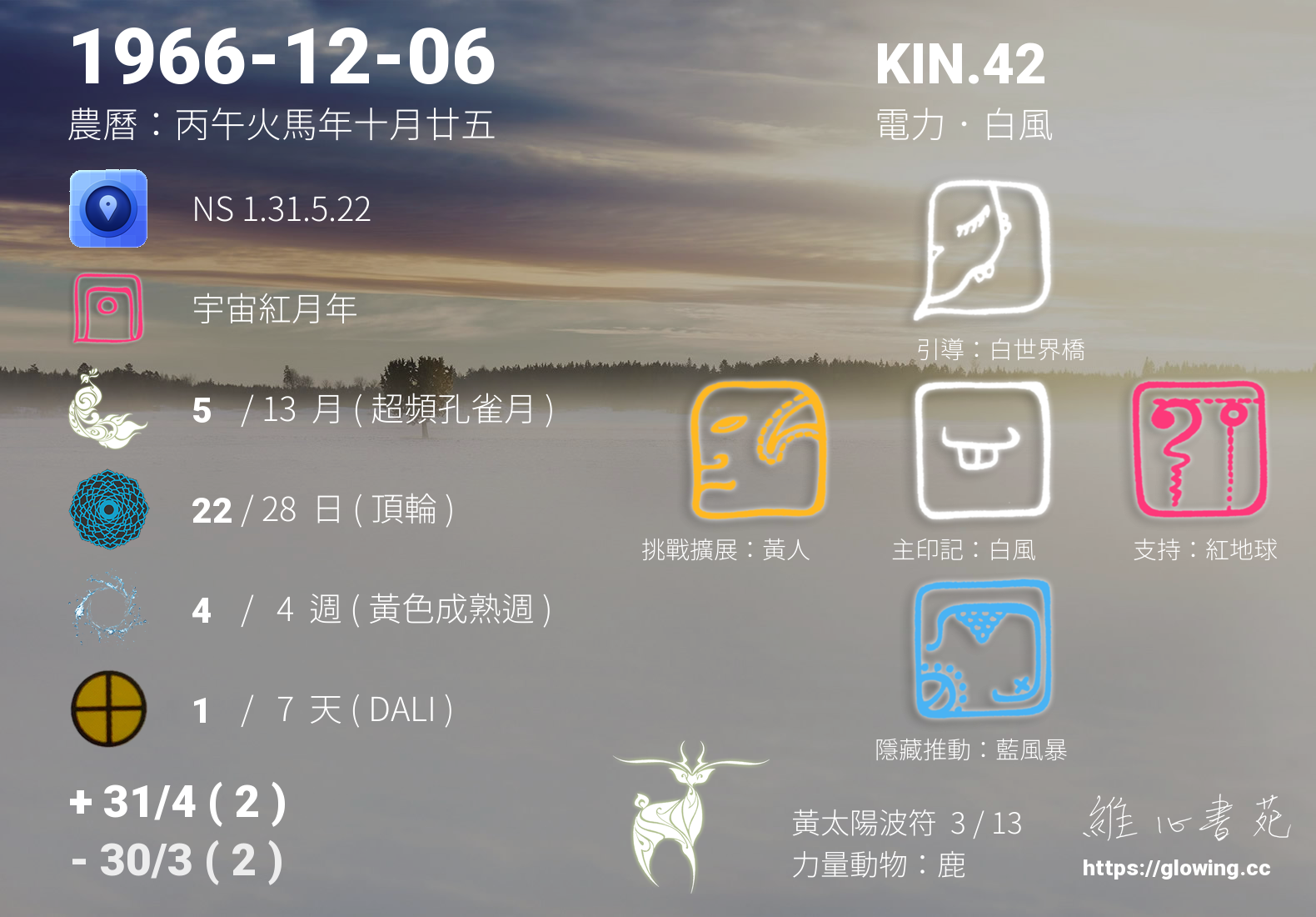 我們可以稱 KIN 42 為 【電力白風】 、 【電力的白風】 、 【黃太陽波符 之 電力白風】 也可以是 【電力白風.黃太陽波符】 ,你比較喜歡哪一個稱號呢?