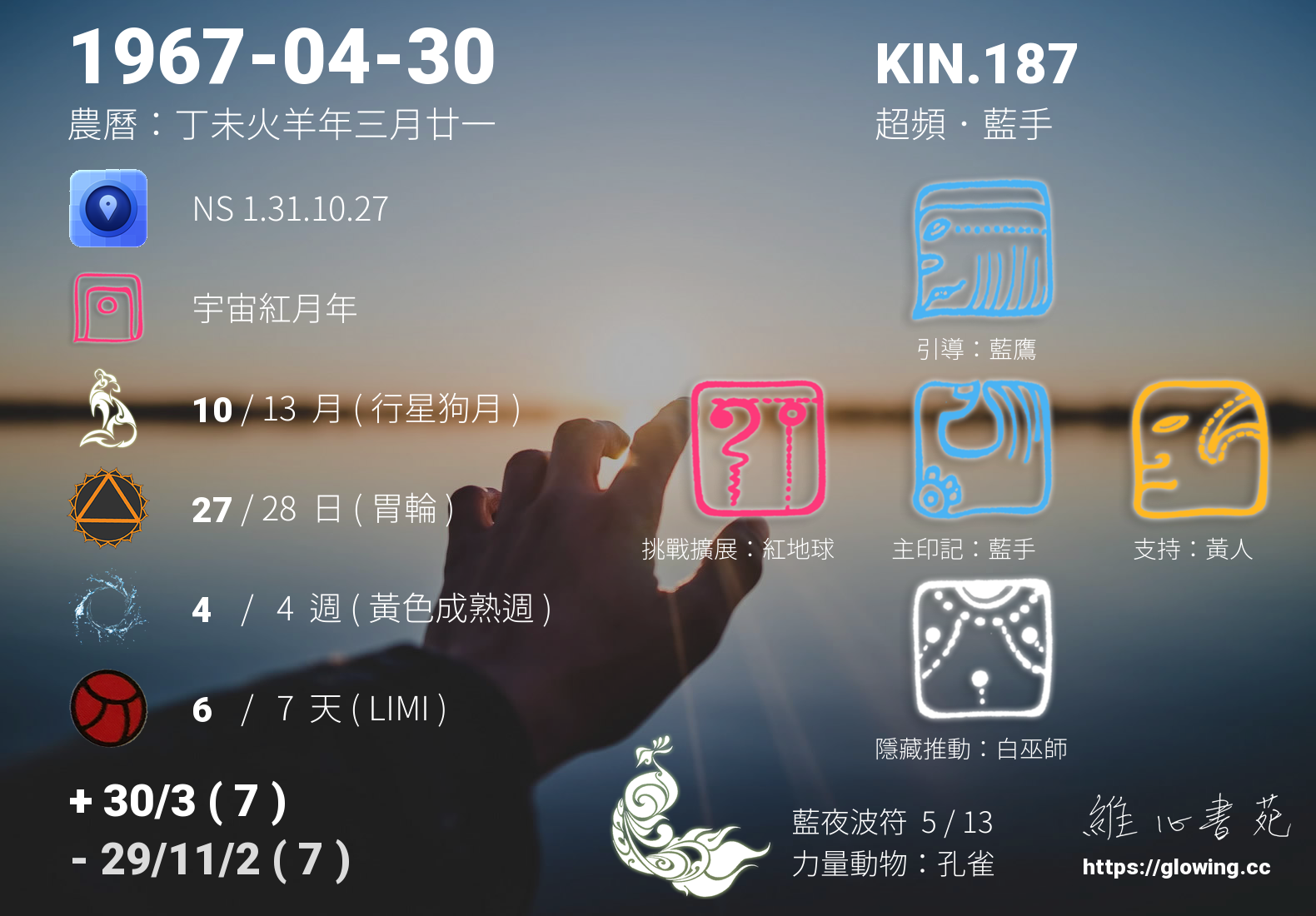 我們可以稱 KIN 187 為 【超頻藍手】 、 【超頻的藍手】 、 【藍夜波符 之 超頻藍手】 也可以是 【超頻藍手.藍夜波符】 ,你比較喜歡哪一個稱號呢?