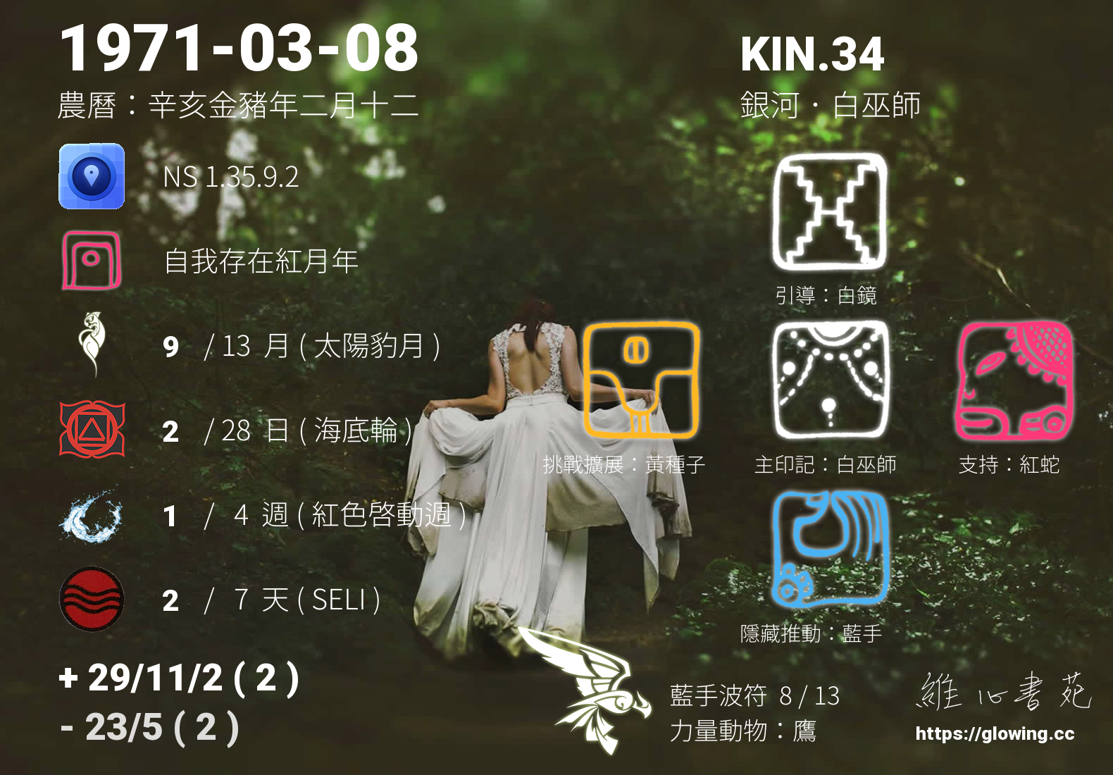 白巫師的引導依據KIN的調性不同會有五種可能性,KIN.34的引導圖騰是白鏡 , 白鏡引導著我們認清自我,為我們的未來留下紀錄,將我們每一個思緒紀錄在天體運行中,在我們回歸的那個當下,迴向各所有的存在與眾生,為這個世界留下美麗色彩。