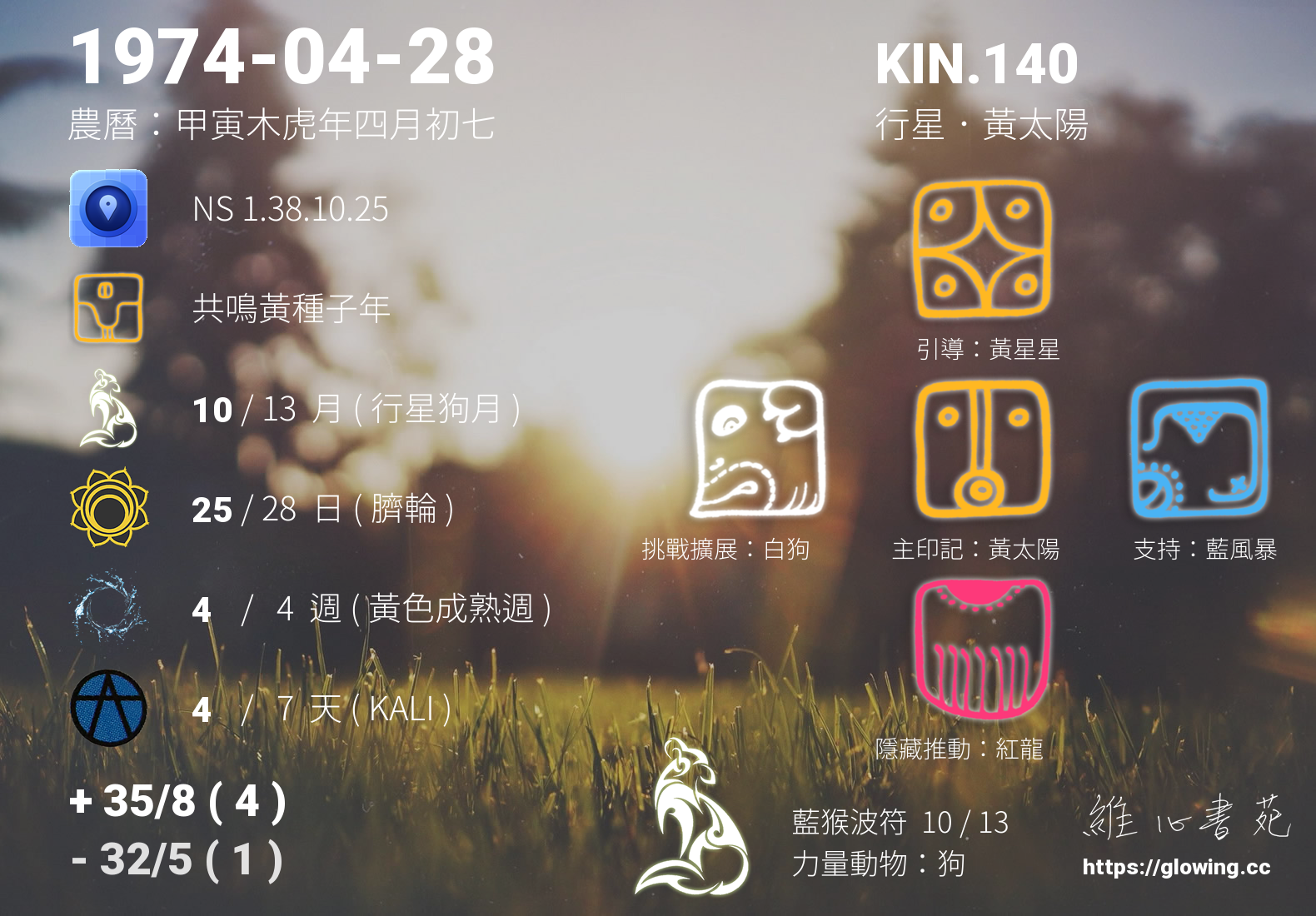 我們可以稱 KIN 140 為 【行星黃太陽】 、 【行星的黃太陽】 、 【藍猴波符 之 行星黃太陽】 也可以是 【行星黃太陽.藍猴波符】 ,你比較喜歡哪一個稱號呢?