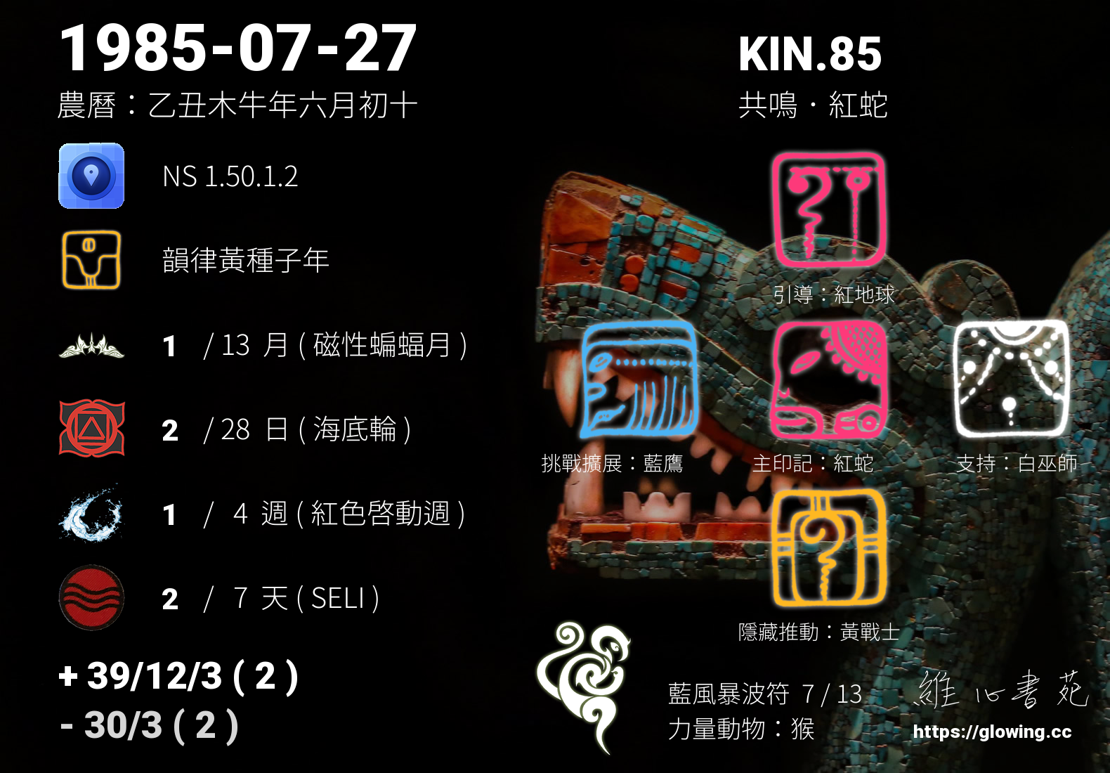- PSI(行星記憶資料庫):KIN.1 磁性 紅龍