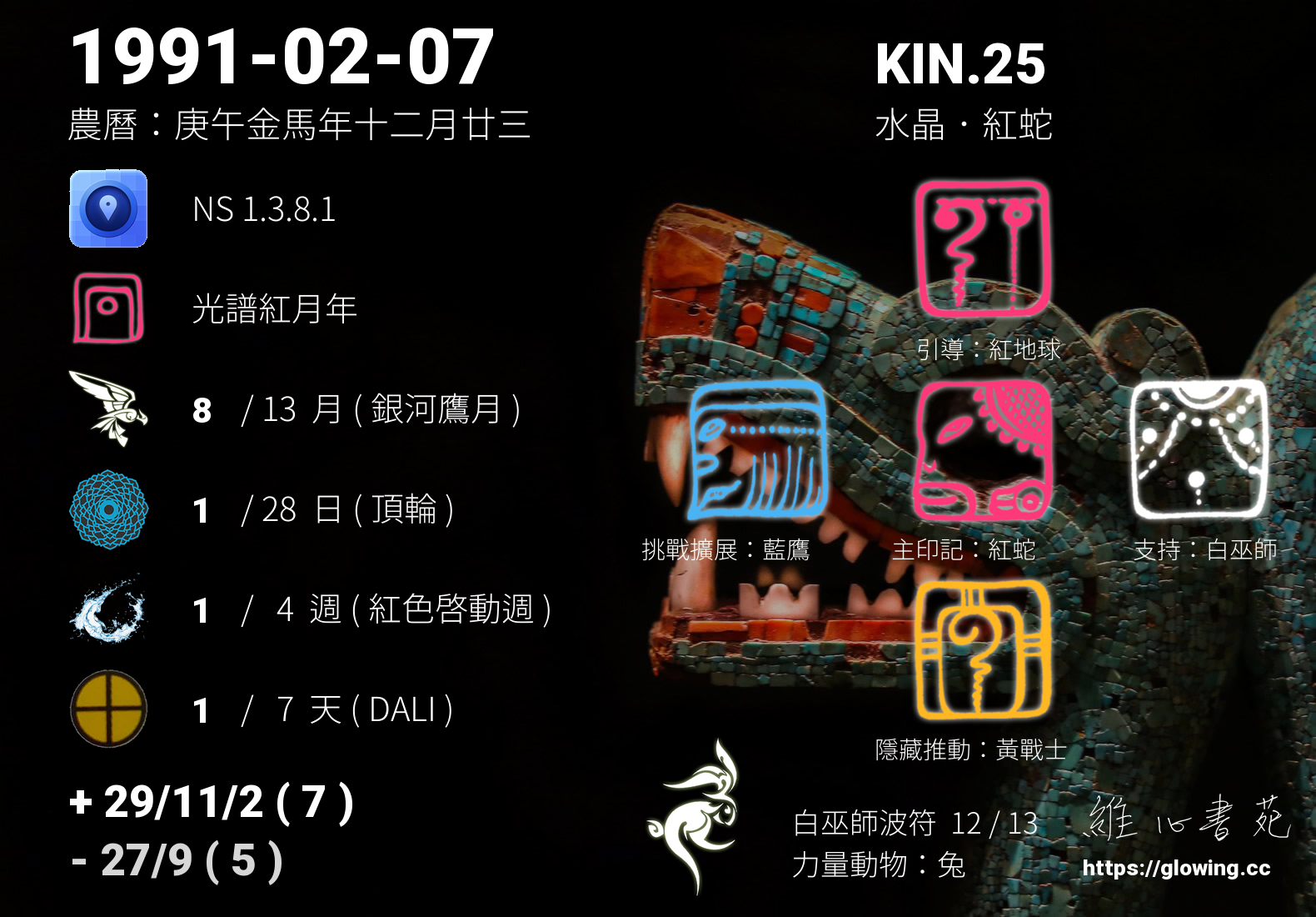 我們可以稱 KIN 25 為 【水晶紅蛇】 、 【水晶的紅蛇】 、 【白巫師波符 之 水晶紅蛇】 也可以是 【水晶紅蛇.白巫師波符】 ,你比較喜歡哪一個稱號呢?