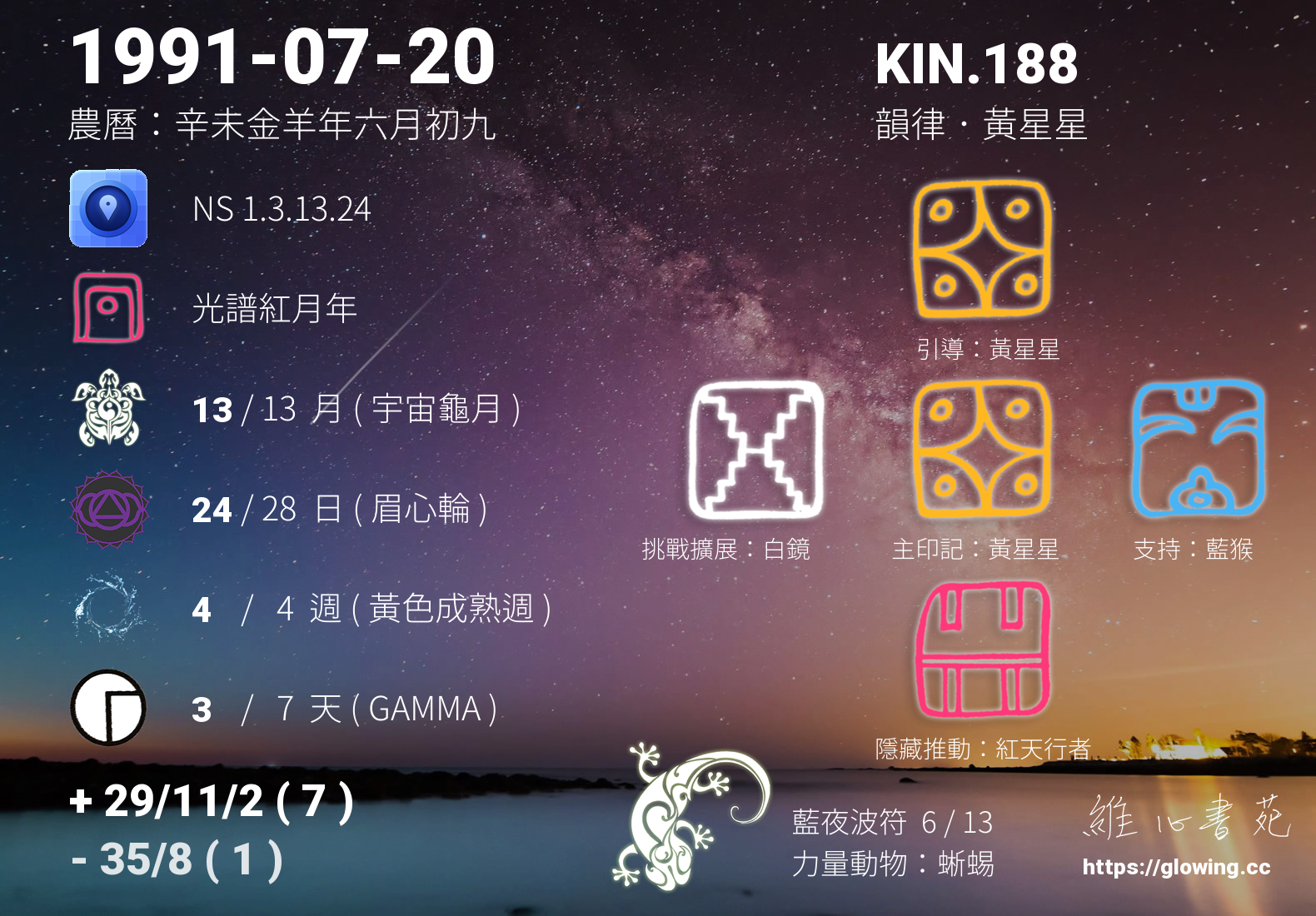 KIN.188 位於 藍夜波符 13 天中的第 6 天,銀河音階為調性 6