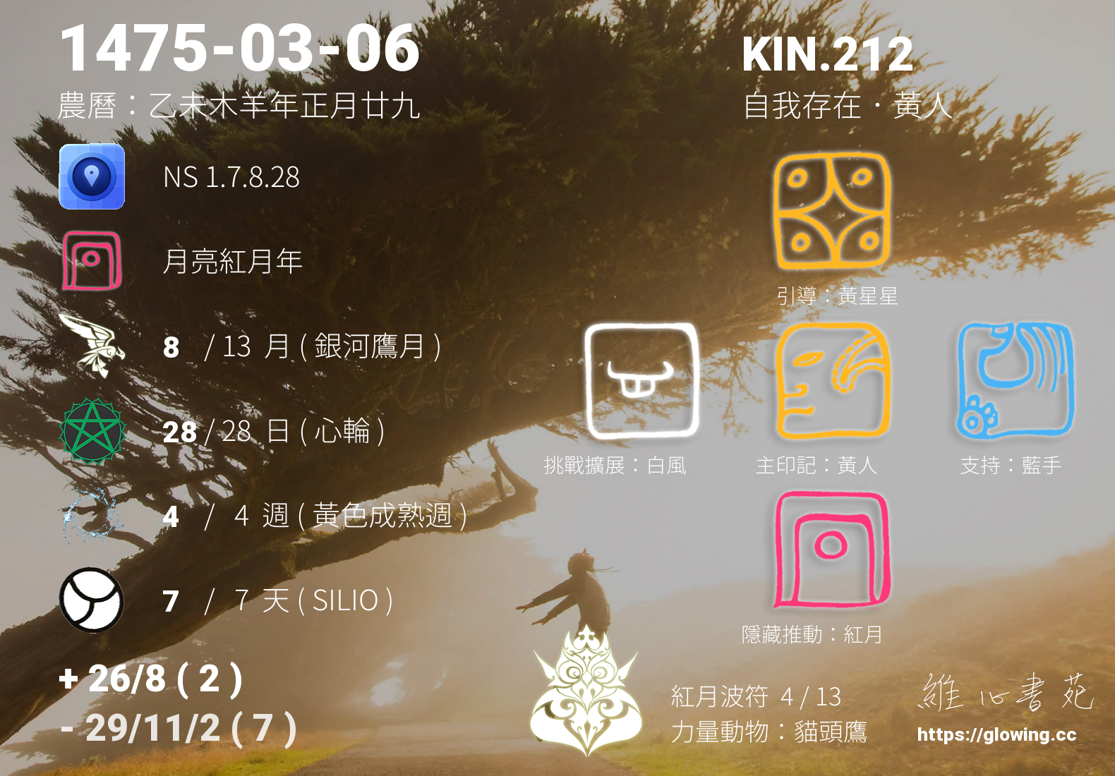 我們可以稱 KIN 212 為 【自我存在黃人】 、 【自我存在的黃人】 、 【紅月波符 之 自我存在黃人】 也可以是 【自我存在黃人.紅月波符】 ,你比較喜歡哪一個稱號呢?