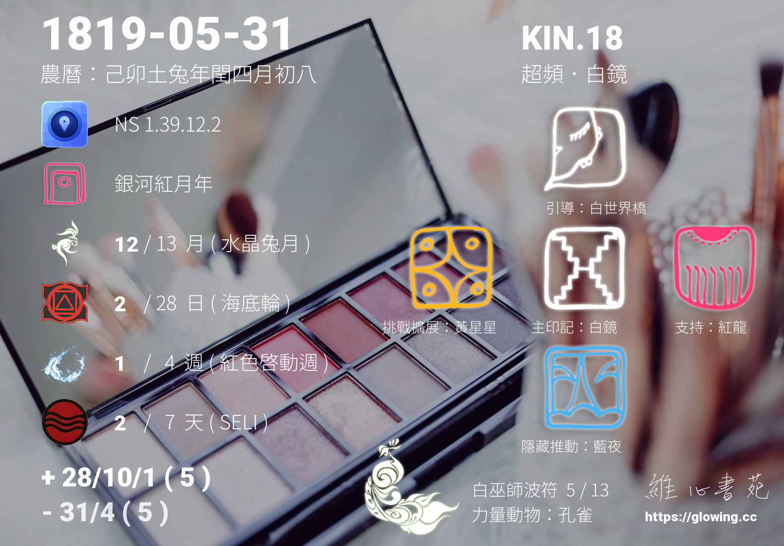 我們可以稱 KIN 18 為 【超頻白鏡】 、 【超頻的白鏡】 、 【白巫師波符 之 超頻白鏡】 也可以是 【超頻白鏡.白巫師波符】 ,你比較喜歡哪一個稱號呢?