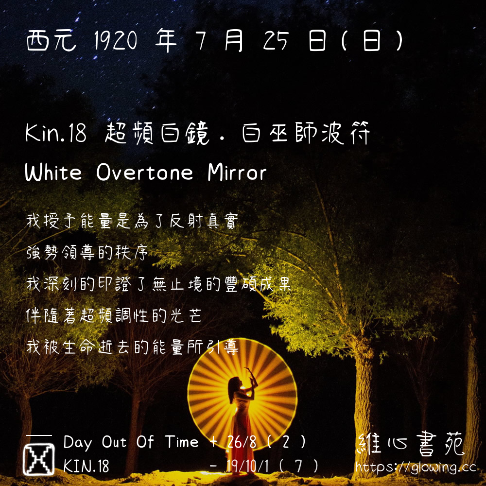 我們可以稱 KIN 18 為 【超頻白鏡】 、 【超頻的白鏡】 、 【白巫師波符 之 超頻白鏡】 也可以是 【超頻白鏡.白巫師波符】 ,你比較喜歡哪一個稱號呢?