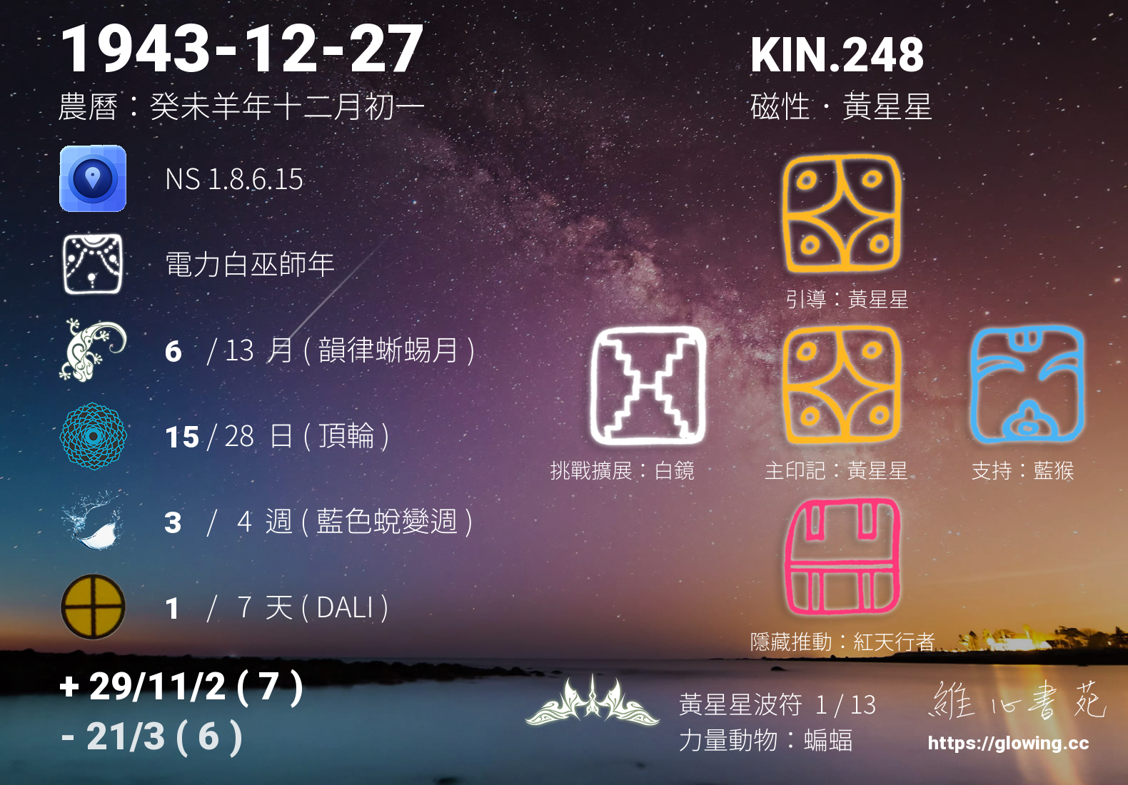 KIN.248 位於 黃星星波符 13 天中的第 1 天,銀河音階為調性 1