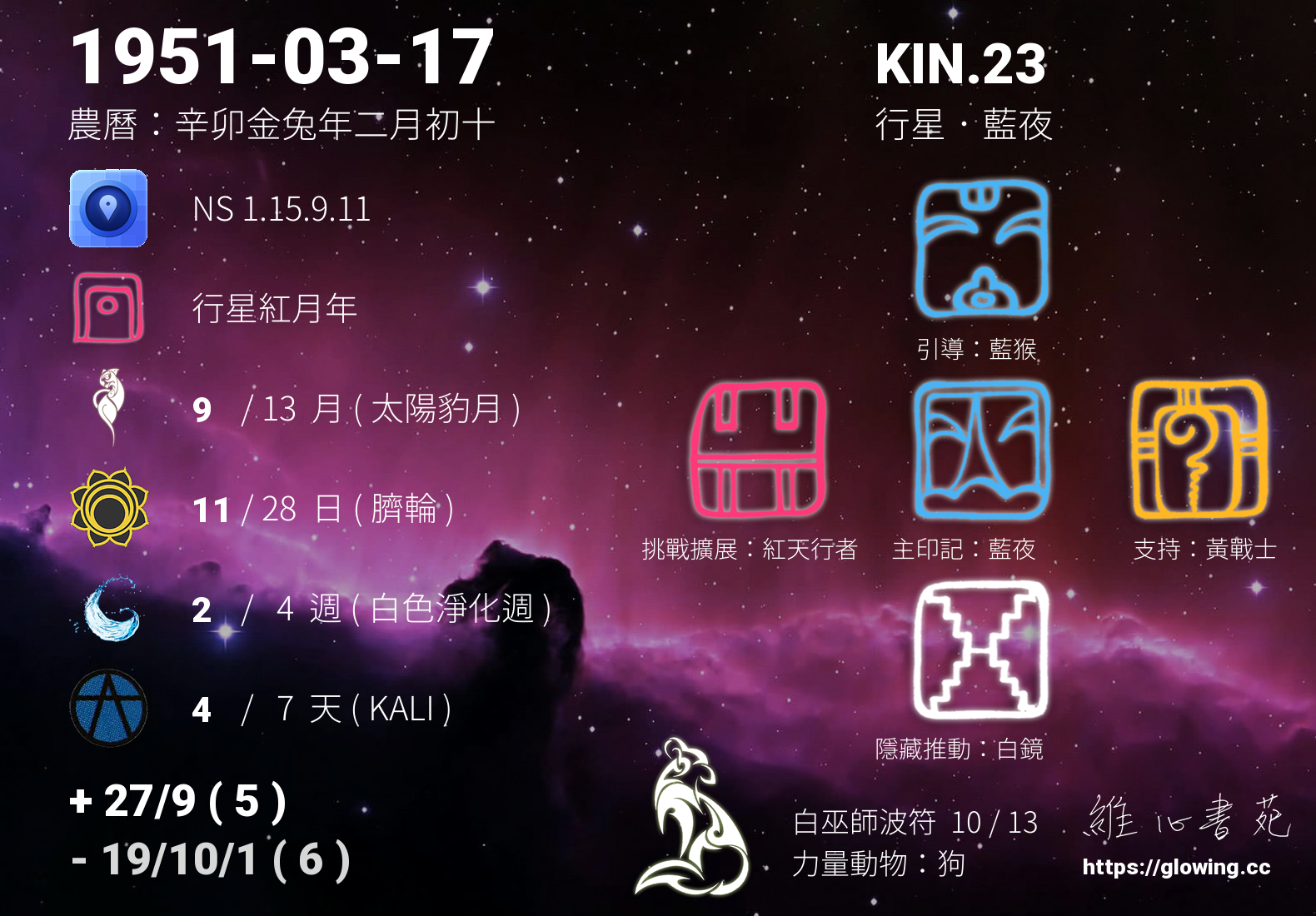 - PSI(行星記憶資料庫):KIN.171 月亮 藍猴