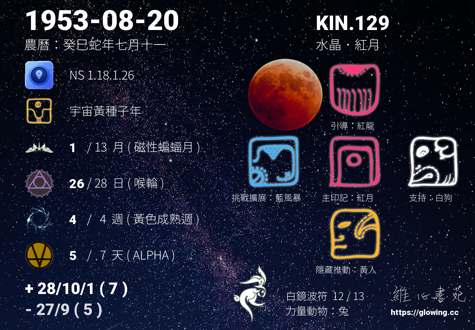 我們可以稱 KIN 129 為 【水晶紅月】 、 【水晶的紅月】 、 【白鏡波符 之 水晶紅月】 也可以是 【水晶紅月.白鏡波符】 ,你比較喜歡哪一個稱號呢?
