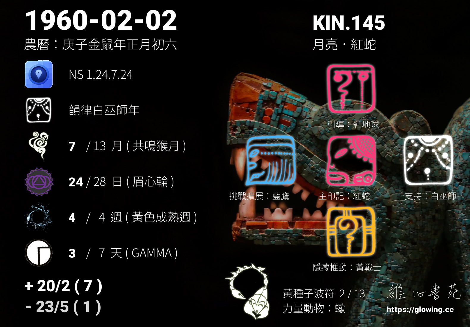 我們可以稱 KIN 145 為 【月亮紅蛇】 、 【月亮的紅蛇】 、 【黃種子波符 之 月亮紅蛇】 也可以是 【月亮紅蛇.黃種子波符】 ,你比較喜歡哪一個稱號呢?