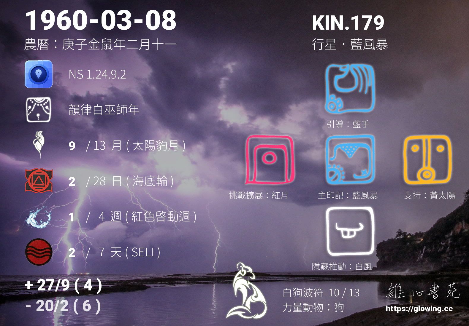 我們可以稱 KIN 179 為 【行星藍風暴】 、 【行星的藍風暴】 、 【白狗波符 之 行星藍風暴】 也可以是 【行星藍風暴.白狗波符】 ,你比較喜歡哪一個稱號呢?