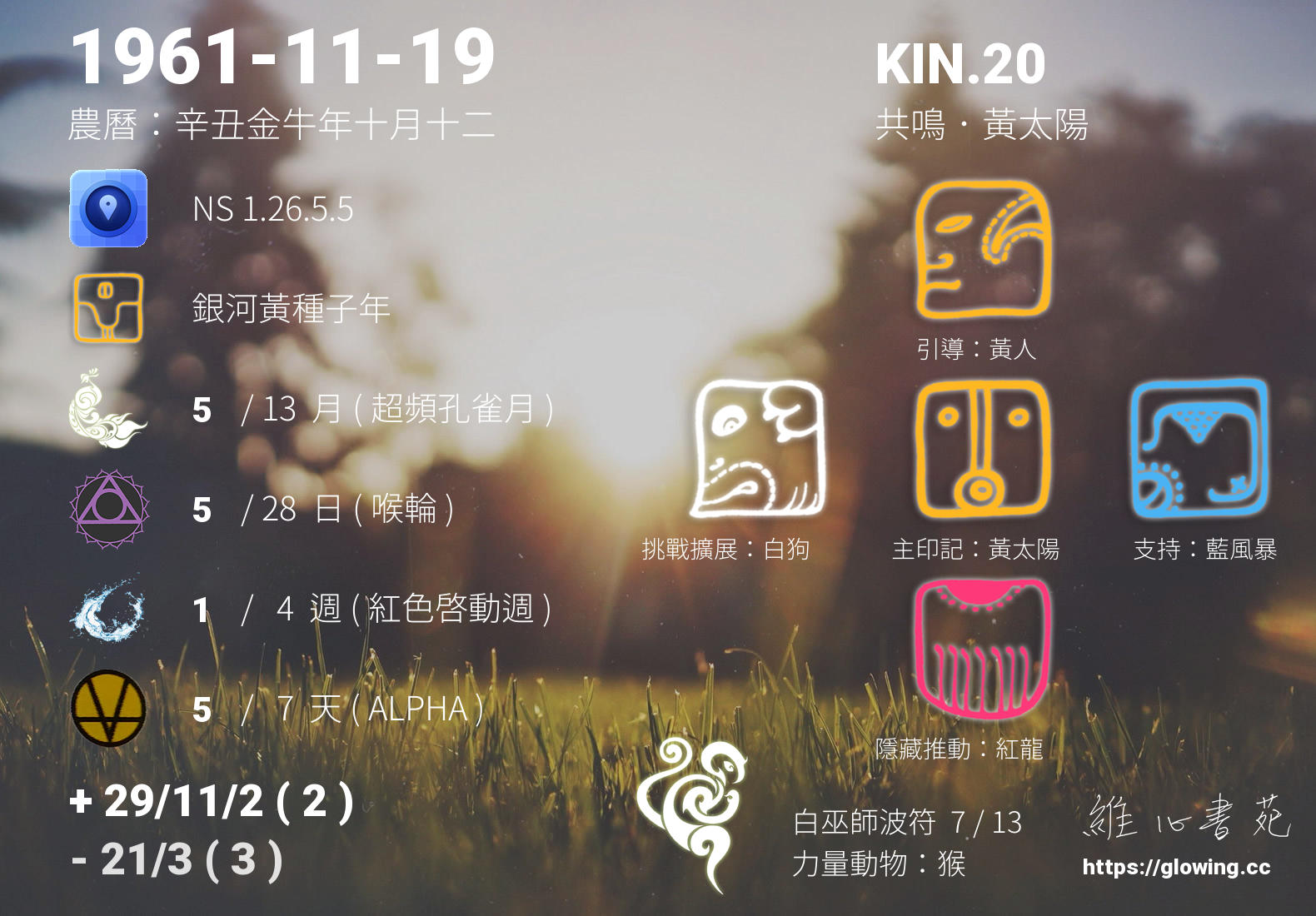 KIN.20 位於 白巫師波符 13 天中的第 7 天,銀河音階為調性 7