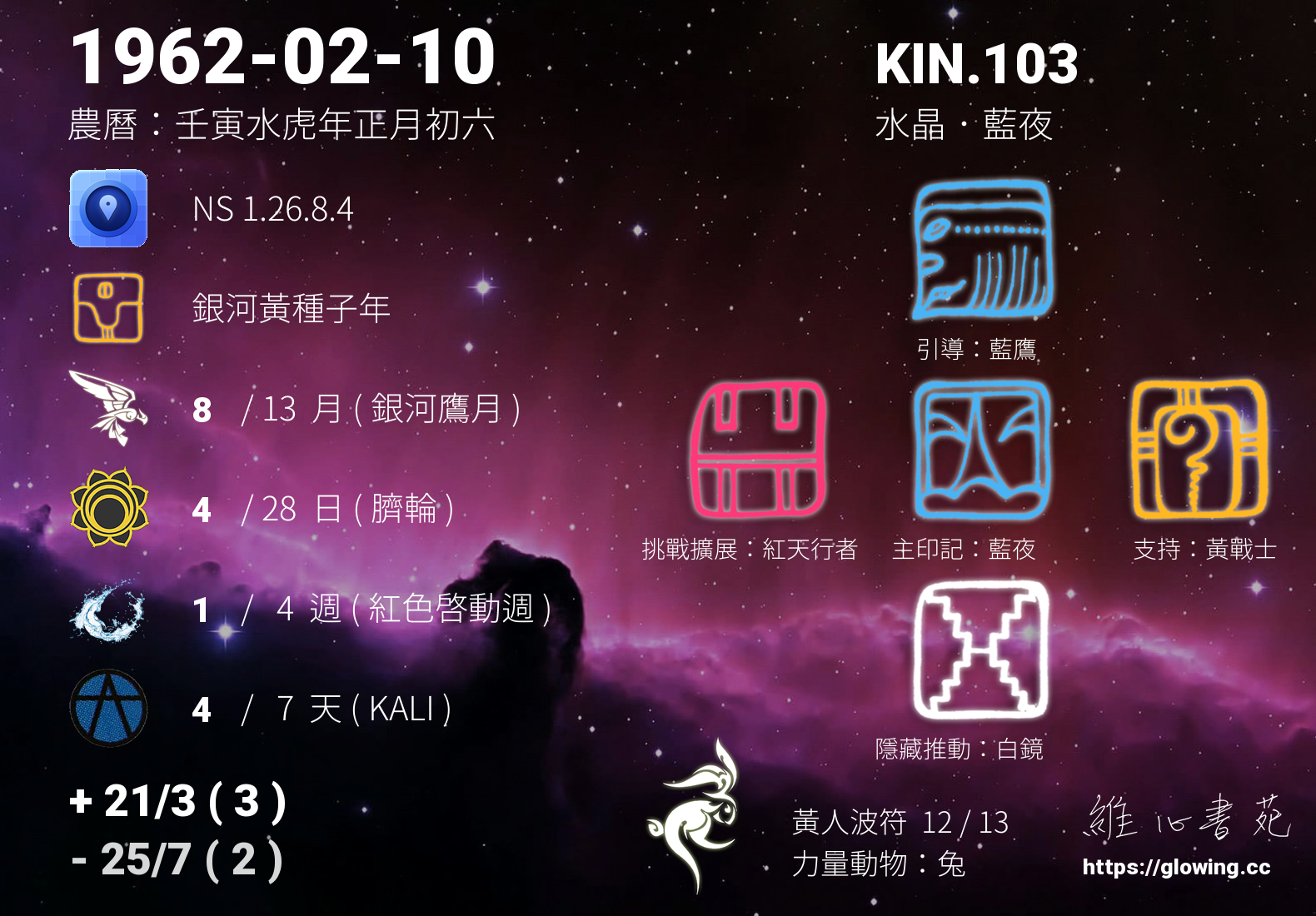 今天的星際原型圖騰為藍夜,我們稱之為主印記, 藍夜是夢想家的原型,有將夢想成真的天賦,直覺力強,在實踐夢想的過程中樂於分享將能更享豐盛。