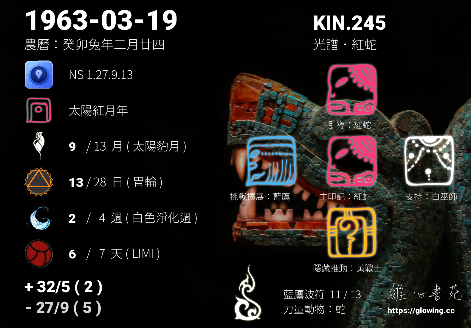 - PSI(行星記憶資料庫):KIN.174 超頻 白巫師