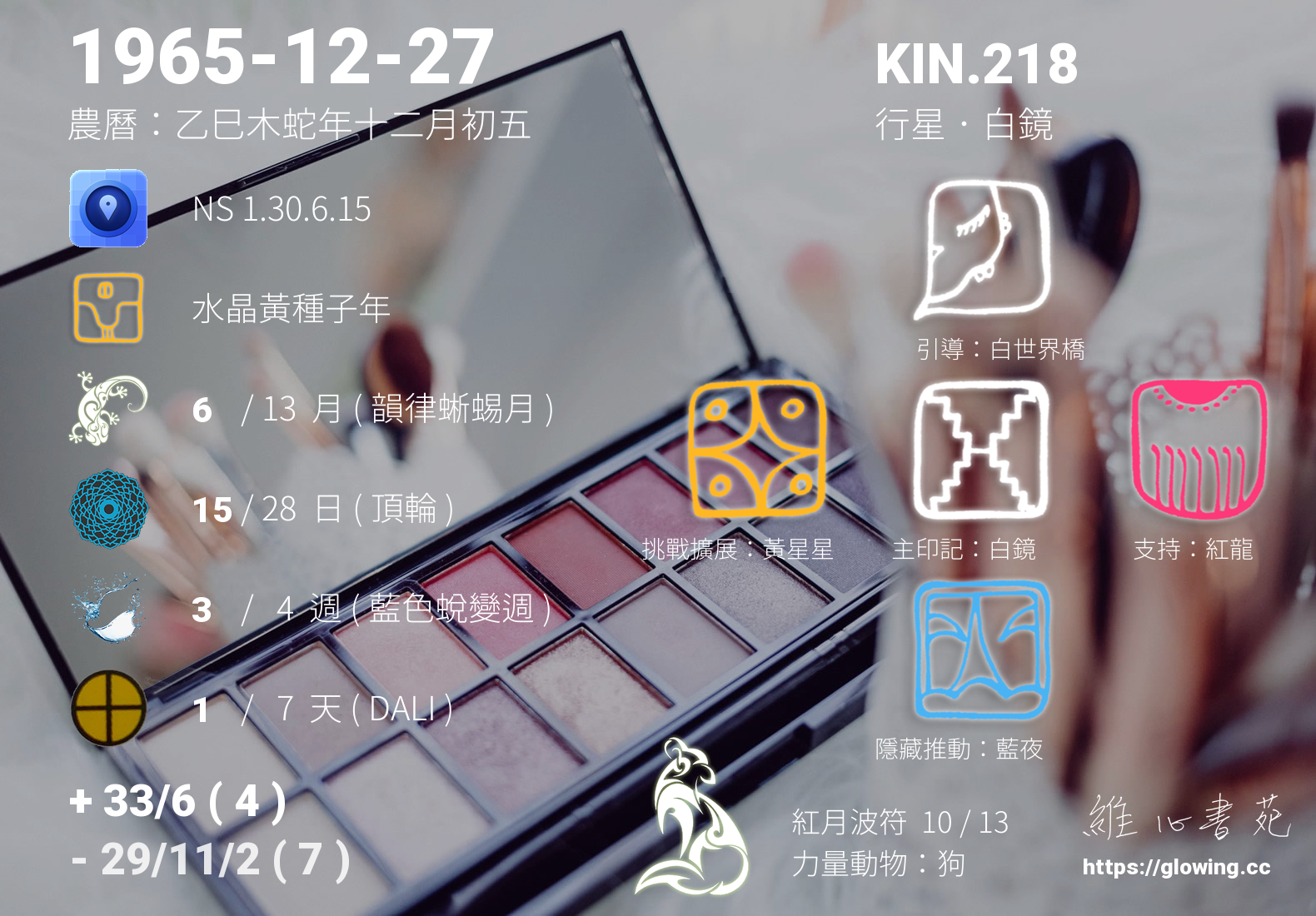 我們可以稱 KIN 218 為 【行星白鏡】 、 【行星的白鏡】 、 【紅月波符 之 行星白鏡】 也可以是 【行星白鏡.紅月波符】 ,你比較喜歡哪一個稱號呢?