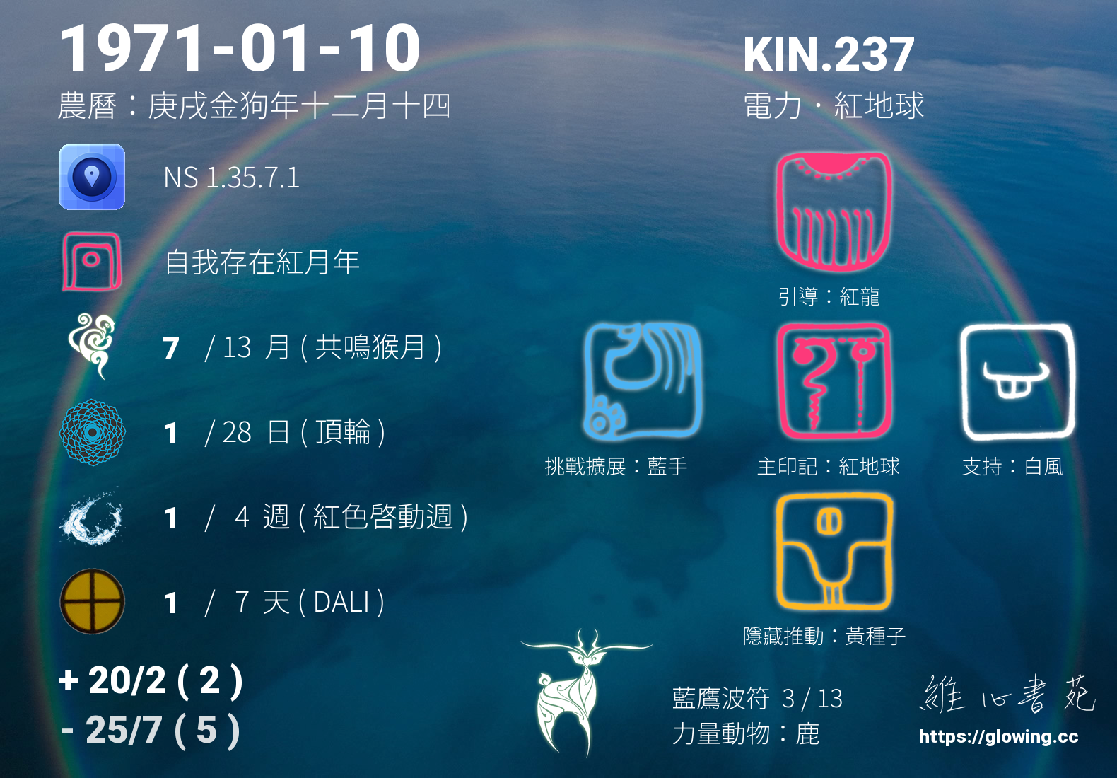 我們可以稱 KIN 237 為 【電力紅地球】 、 【電力的紅地球】 、 【藍鷹波符 之 電力紅地球】 也可以是 【電力紅地球.藍鷹波符】 ,你比較喜歡哪一個稱號呢?