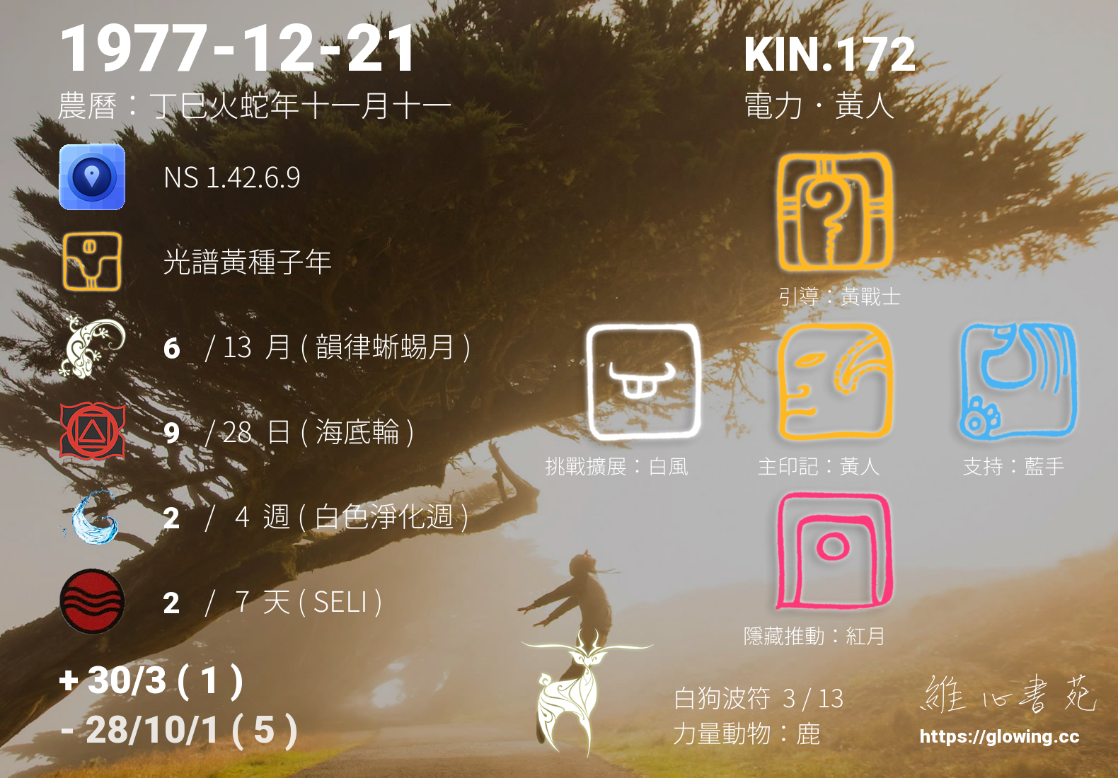 KIN.172 位於 白狗波符 13 天中的第 3 天,銀河音階為調性 3