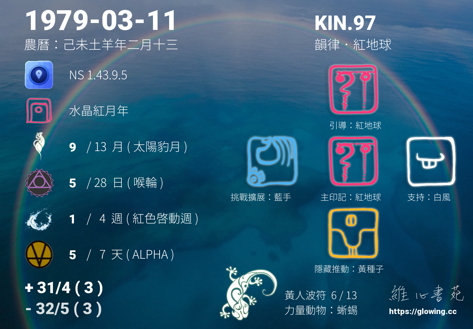 KIN.97 位於 黃人波符 13 天中的第 6 天,銀河音階為調性 6