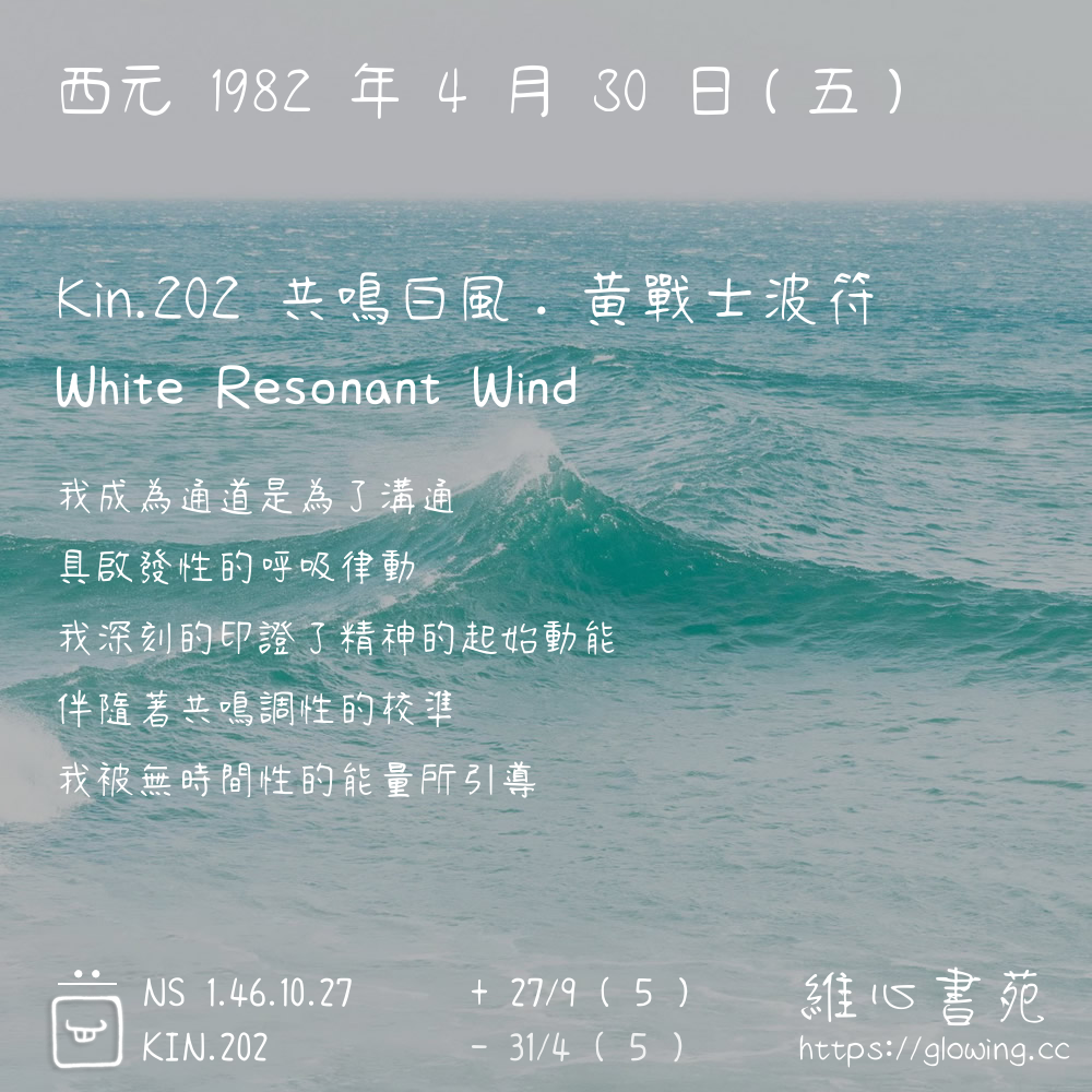 我們可以稱 KIN 202 為 【共鳴白風】 、 【共鳴的白風】 、 【黃戰士波符 之 共鳴白風】 也可以是 【共鳴白風.黃戰士波符】 ,你比較喜歡哪一個稱號呢?