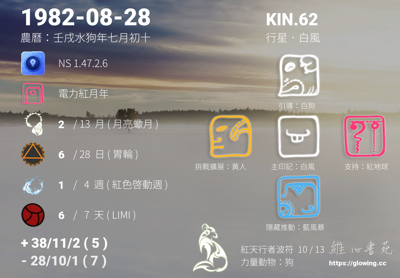 我們可以稱 KIN 62 為 【行星白風】 、 【行星的白風】 、 【紅天行者波符 之 行星白風】 也可以是 【行星白風.紅天行者波符】 ,你比較喜歡哪一個稱號呢?