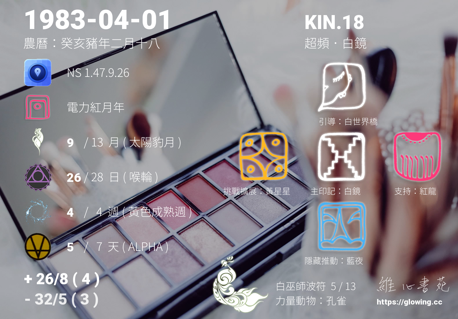我們可以稱 KIN 18 為 【超頻白鏡】 、 【超頻的白鏡】 、 【白巫師波符 之 超頻白鏡】 也可以是 【超頻白鏡.白巫師波符】 ,你比較喜歡哪一個稱號呢?
