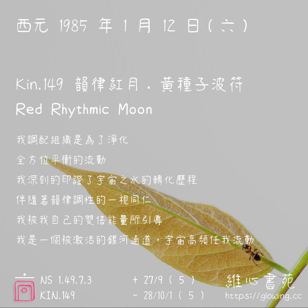 我們可以稱 KIN 149 為 【韻律紅月】 、 【韻律的紅月】 、 【黃種子波符 之 韻律紅月】 也可以是 【韻律紅月.黃種子波符】 ,你比較喜歡哪一個稱號呢?