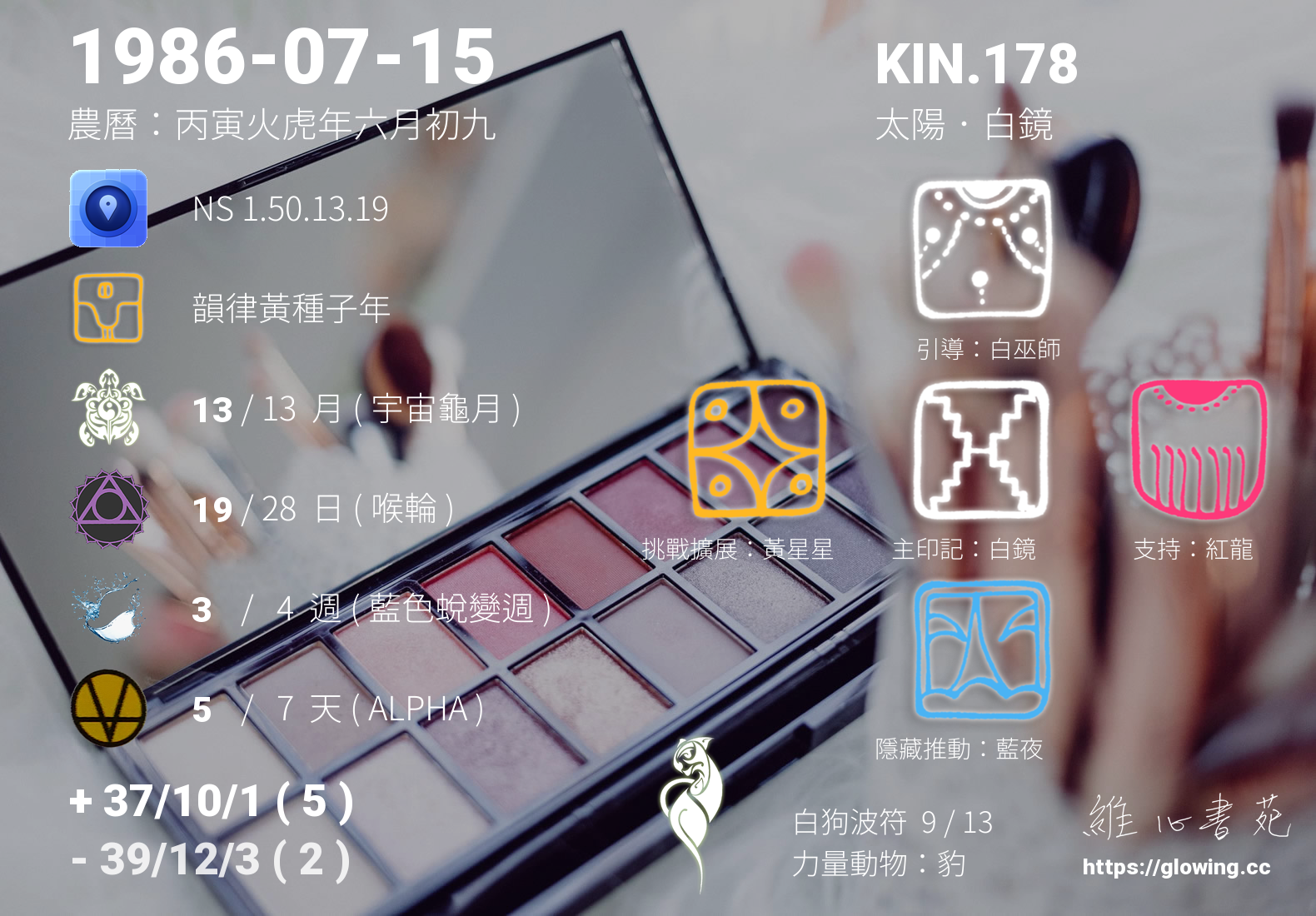 我們可以稱 KIN 178 為 【太陽白鏡】 、 【太陽的白鏡】 、 【白狗波符 之 太陽白鏡】 也可以是 【太陽白鏡.白狗波符】 ,你比較喜歡哪一個稱號呢?