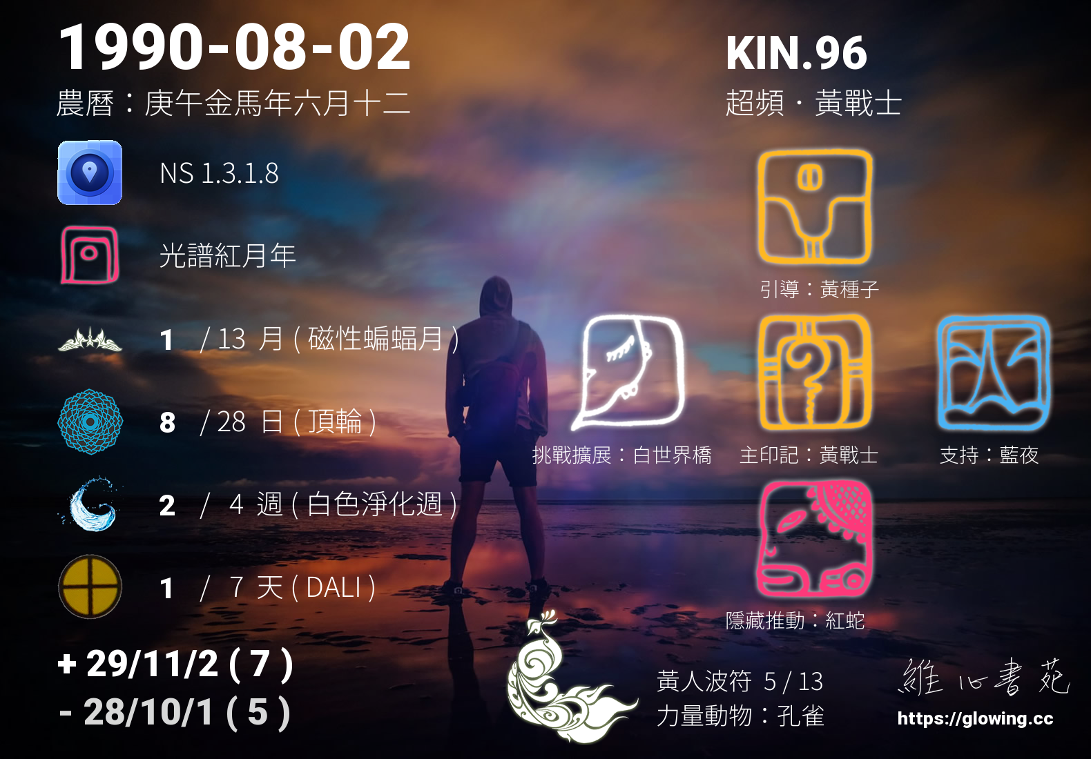 我們可以稱 KIN 96 為 【超頻黃戰士】 、 【超頻的黃戰士】 、 【黃人波符 之 超頻黃戰士】 也可以是 【超頻黃戰士.黃人波符】 ,你比較喜歡哪一個稱號呢?