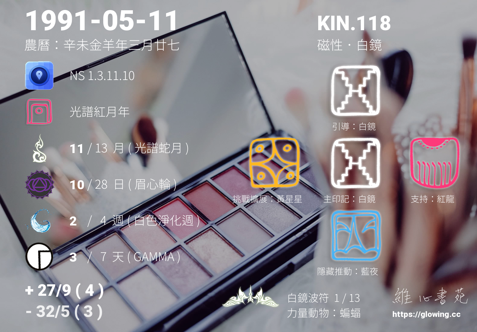 我們可以稱 KIN 118 為 【磁性白鏡】 、 【磁性的白鏡】 、 【白鏡波符 之 磁性白鏡】 也可以是 【磁性白鏡.白鏡波符】 ,你比較喜歡哪一個稱號呢?