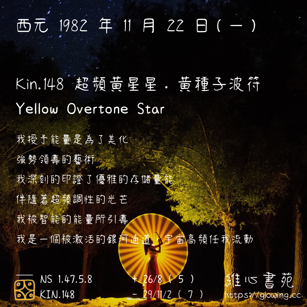 我們可以稱 KIN 148 為 【超頻黃星星】 、 【超頻的黃星星】 、 【黃種子波符 之 超頻黃星星】 也可以是 【超頻黃星星.黃種子波符】 ,你比較喜歡哪一個稱號呢?
