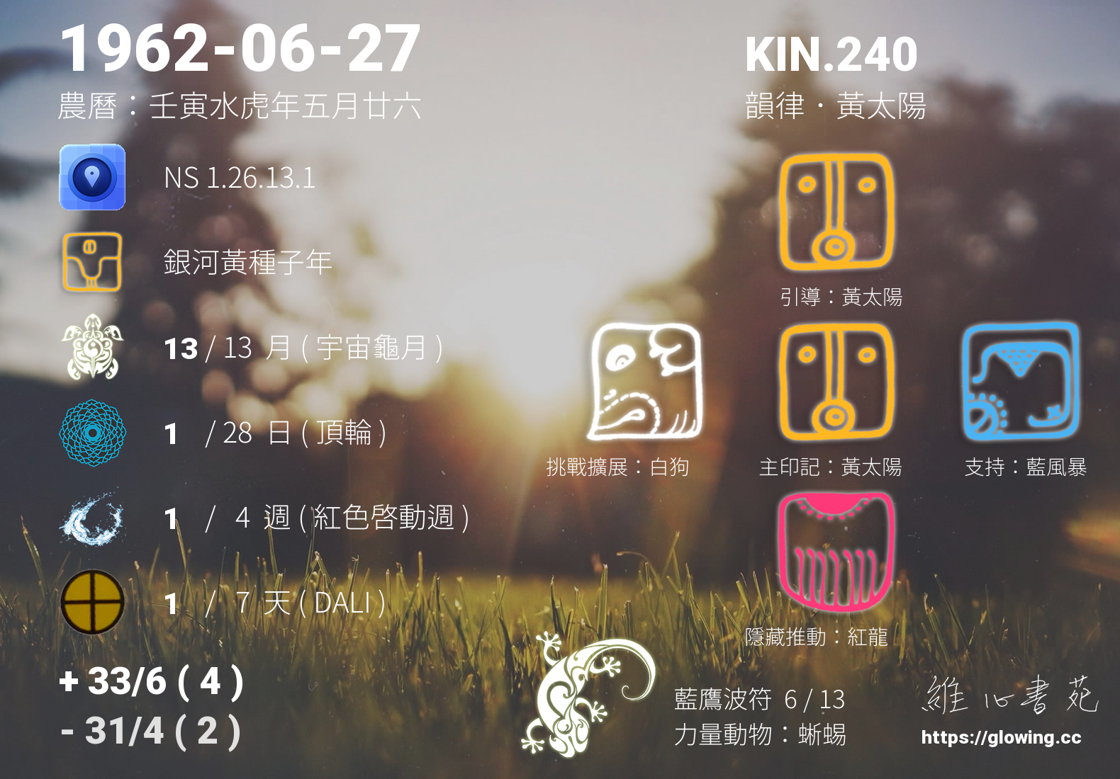 我們可以稱 KIN 240 為 【韻律黃太陽】 、 【韻律的黃太陽】 、 【藍鷹波符 之 韻律黃太陽】 也可以是 【韻律黃太陽.藍鷹波符】 ,你比較喜歡哪一個稱號呢?