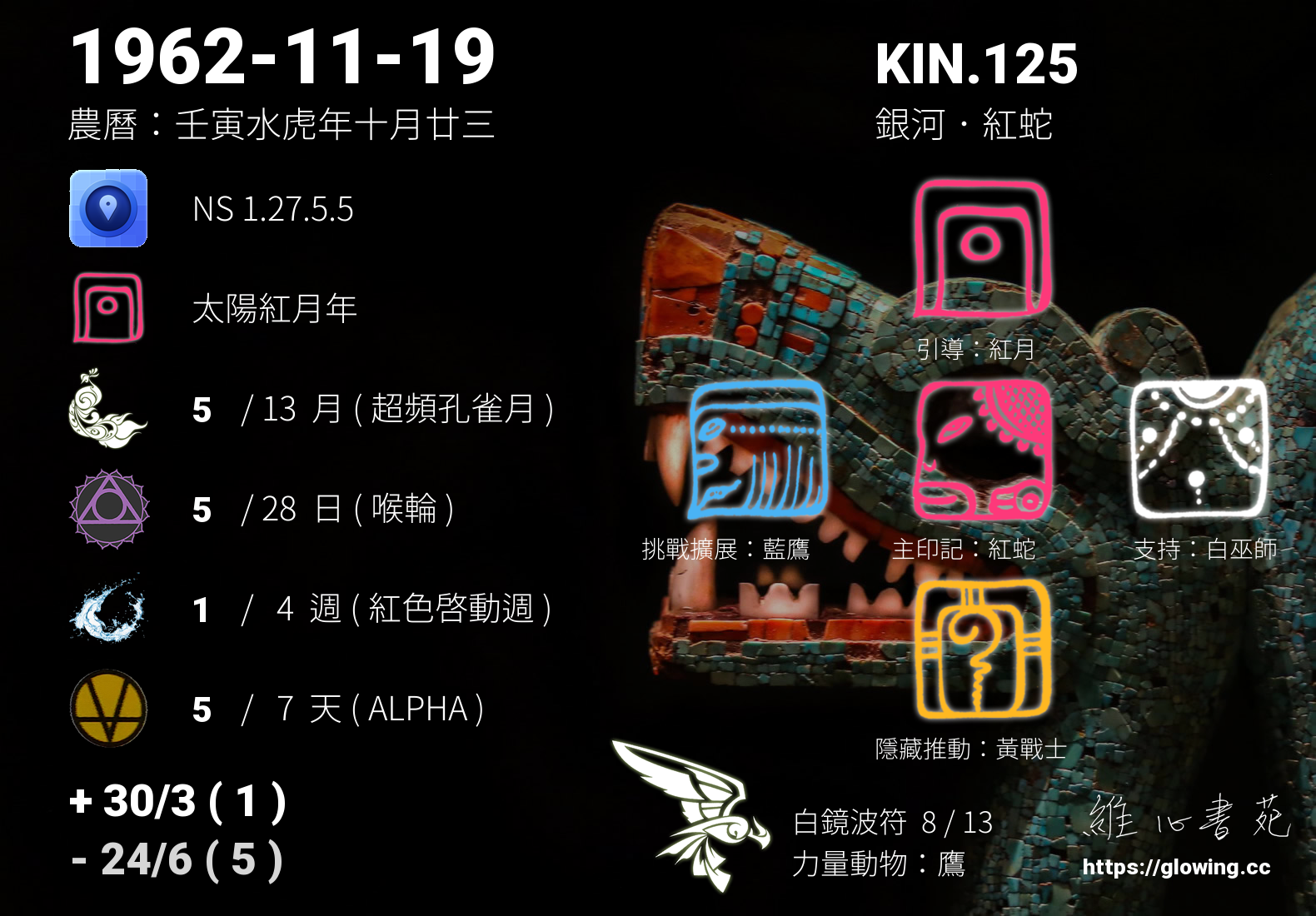 我們可以稱 KIN 125 為 【銀河紅蛇】 、 【銀河的紅蛇】 、 【白鏡波符 之 銀河紅蛇】 也可以是 【銀河紅蛇.白鏡波符】 ,你比較喜歡哪一個稱號呢?