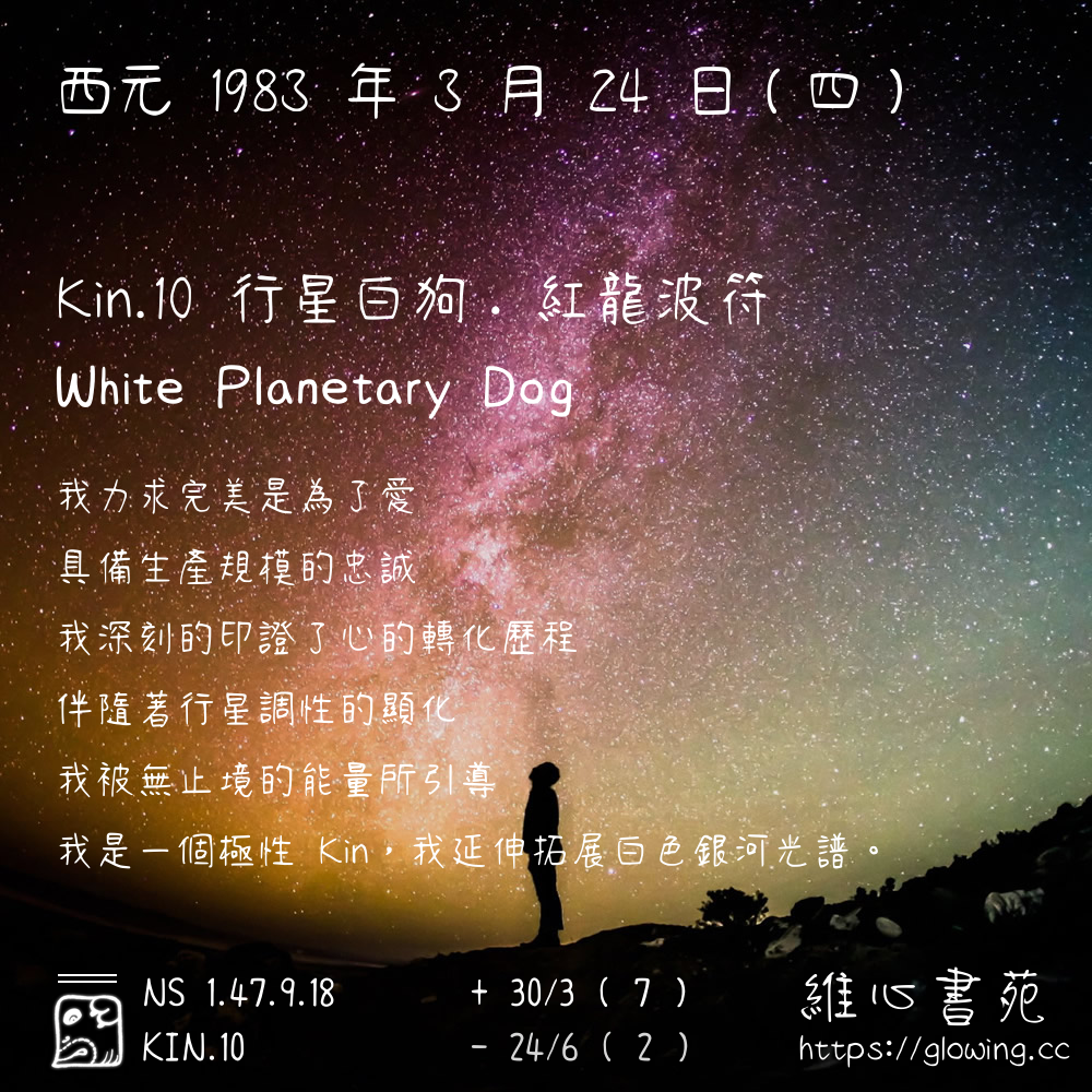 我們可以稱 KIN 10 為 【行星白狗】 、 【行星的白狗】 、 【紅龍波符 之 行星白狗】 也可以是 【行星白狗.紅龍波符】 ,你比較喜歡哪一個稱號呢?