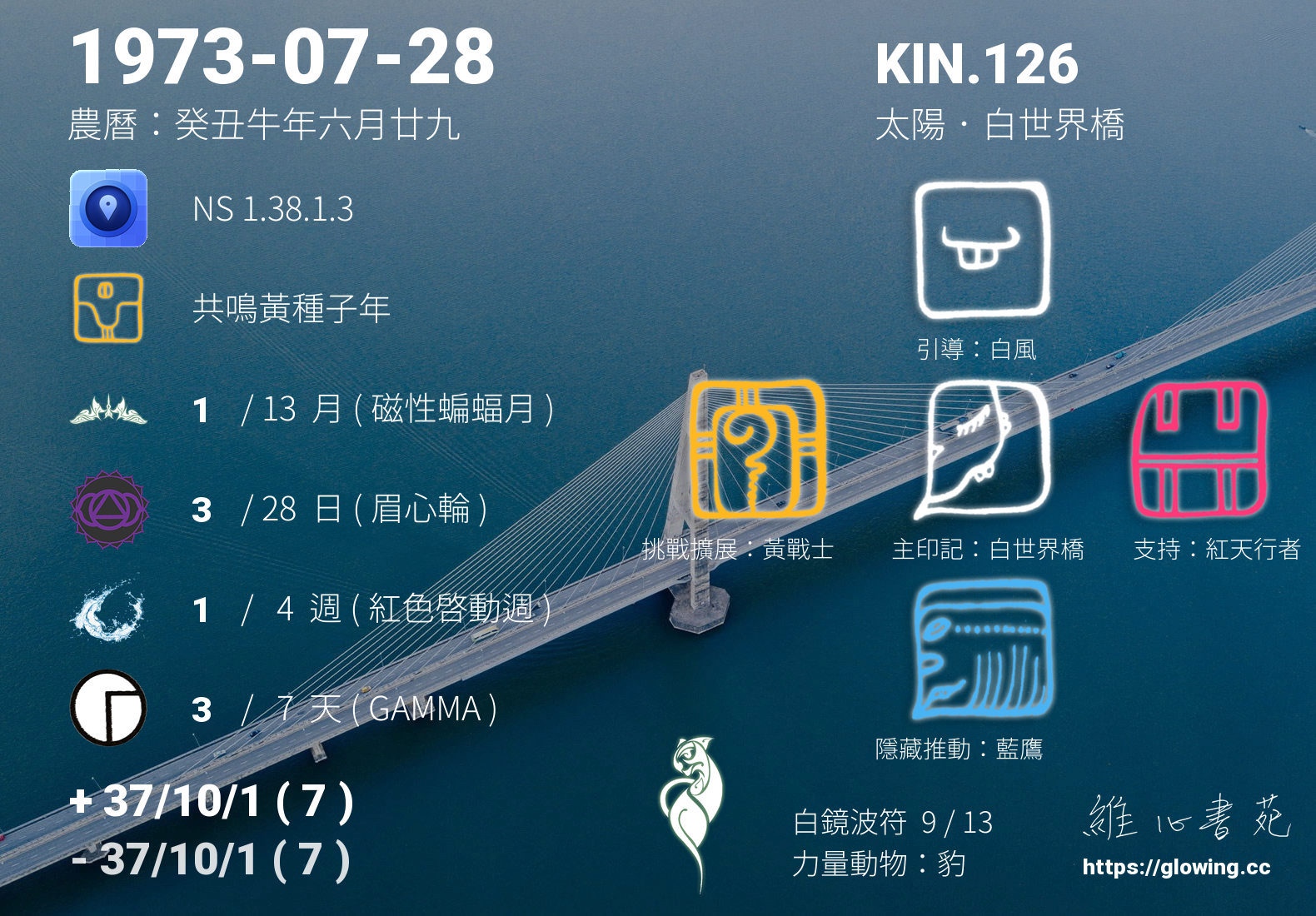 今天的星際原型圖騰為白世界橋,我們稱之為主印記, 白世界橋的重心在於平衡,擅長橋接不同領域的族群或個人,跨越對死亡的執著或恐懼,將可更自在瀟灑的看待世界。