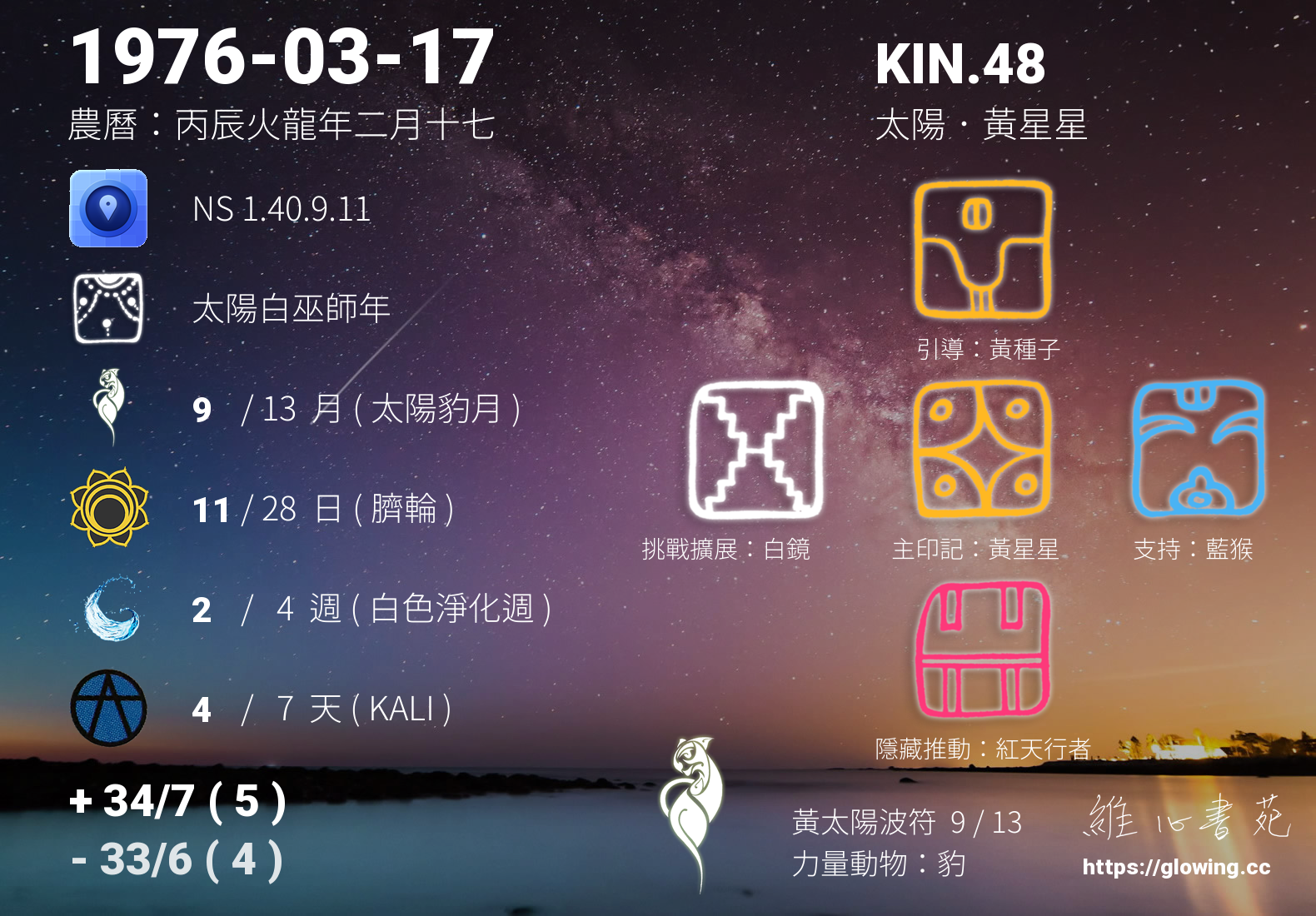 我們可以稱 KIN 48 為 【太陽黃星星】 、 【太陽的黃星星】 、 【黃太陽波符 之 太陽黃星星】 也可以是 【太陽黃星星.黃太陽波符】 ,你比較喜歡哪一個稱號呢?