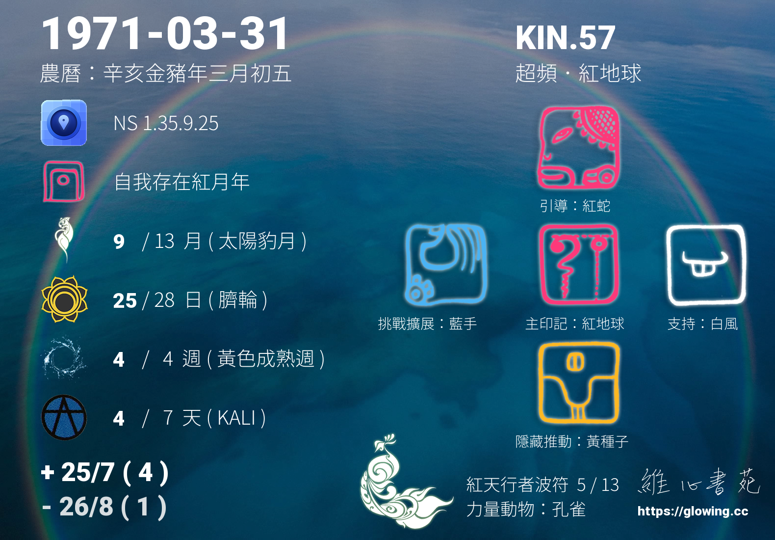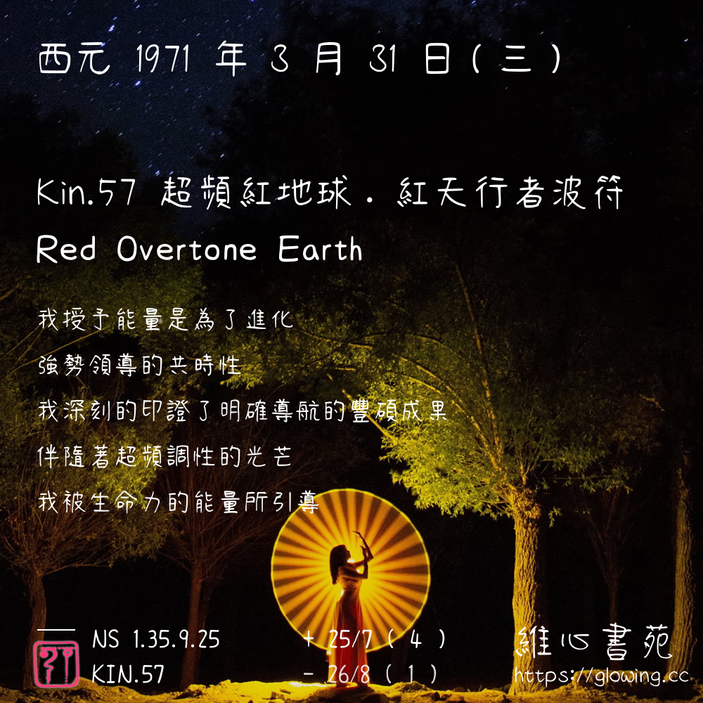 我們可以稱 KIN 57 為 【超頻紅地球】 、 【超頻的紅地球】 、 【紅天行者波符 之 超頻紅地球】 也可以是 【超頻紅地球.紅天行者波符】 ,你比較喜歡哪一個稱號呢?