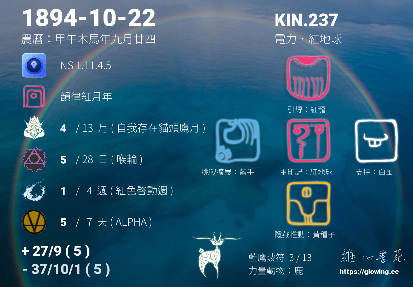 我們可以稱 KIN 237 為 【電力紅地球】 、 【電力的紅地球】 、 【藍鷹波符 之 電力紅地球】 也可以是 【電力紅地球.藍鷹波符】 ,你比較喜歡哪一個稱號呢?