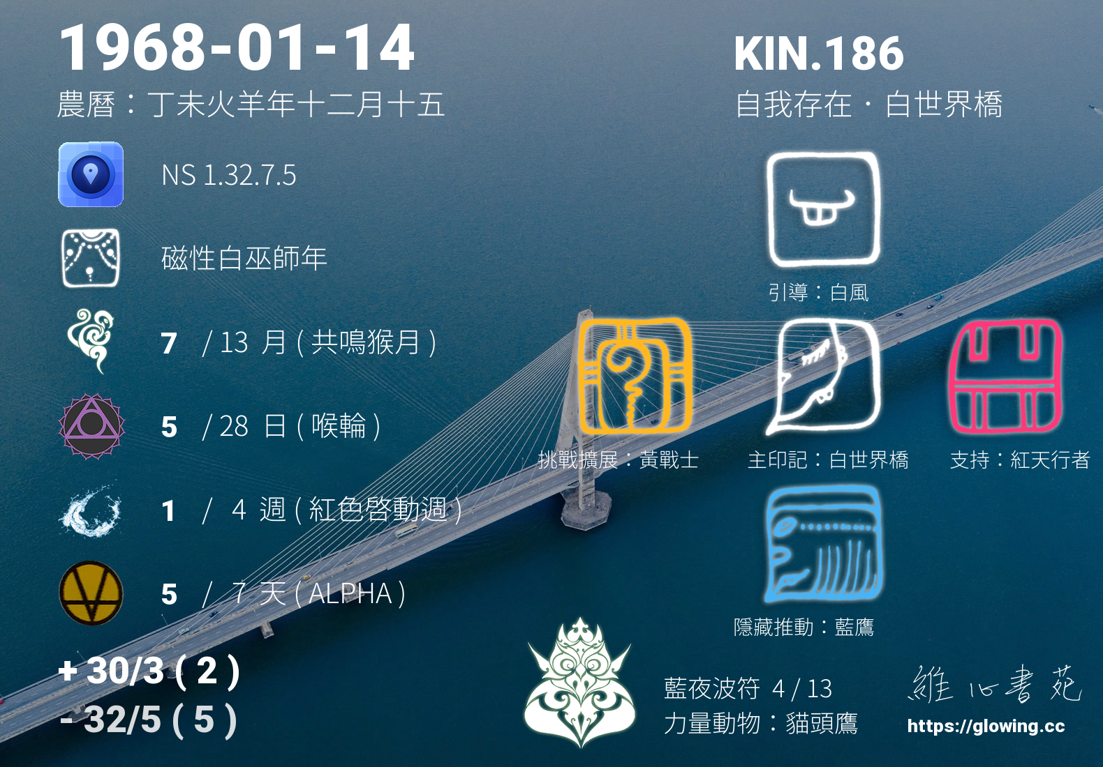 今天的星際原型圖騰為白世界橋,我們稱之為主印記, 白世界橋的重心在於平衡,擅長橋接不同領域的族群或個人,跨越對死亡的執著或恐懼,將可更自在瀟灑的看待世界。