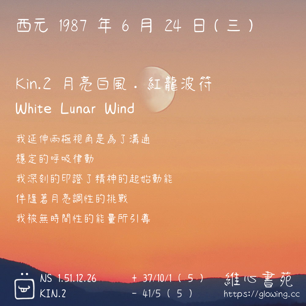 我們可以稱 KIN 2 為 【月亮白風】 、 【月亮的白風】 、 【紅龍波符 之 月亮白風】 也可以是 【月亮白風.紅龍波符】 ,你比較喜歡哪一個稱號呢?