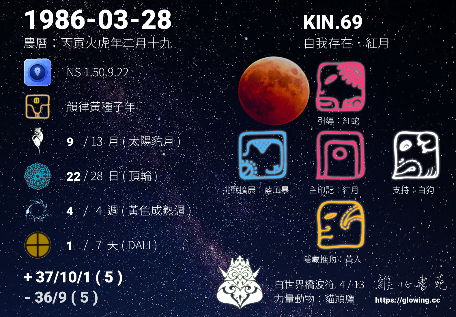 我們可以稱 KIN 69 為 【自我存在紅月】 、 【自我存在的紅月】 、 【白世界橋波符 之 自我存在紅月】 也可以是 【自我存在紅月.白世界橋波符】 ,你比較喜歡哪一個稱號呢?